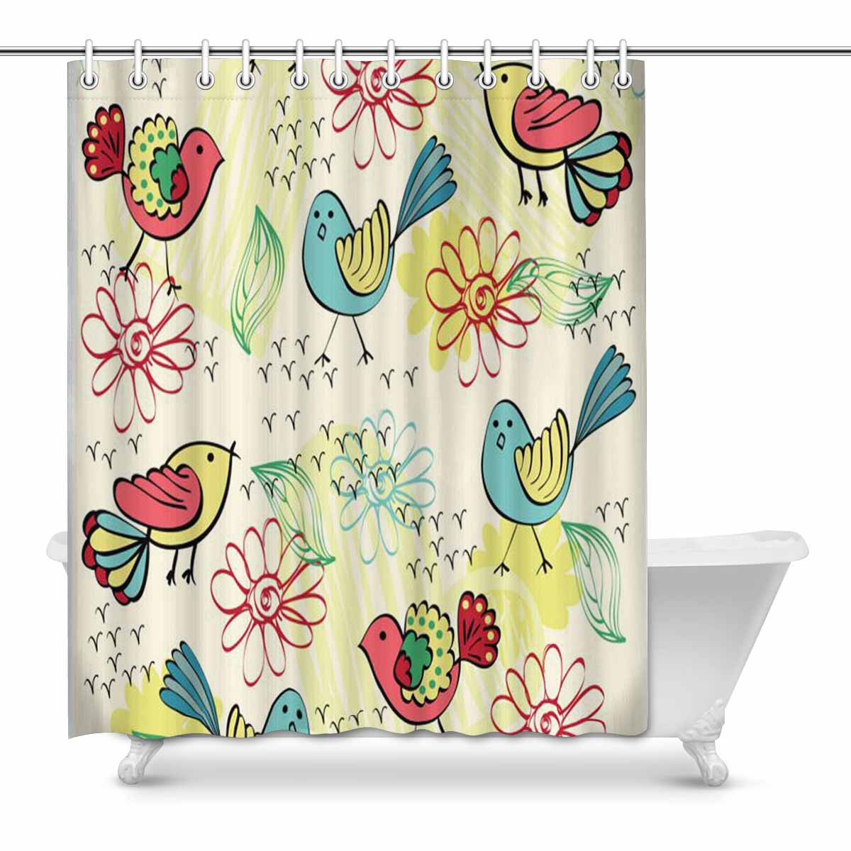 Bathroom Shower Curtain 60in x 72in with cute colorful birds pattern