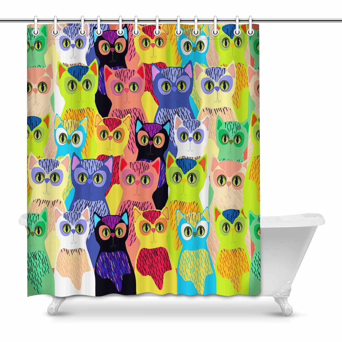 Bathroom Shower Curtain 60in x 72in with Cute colorful cartoon cats