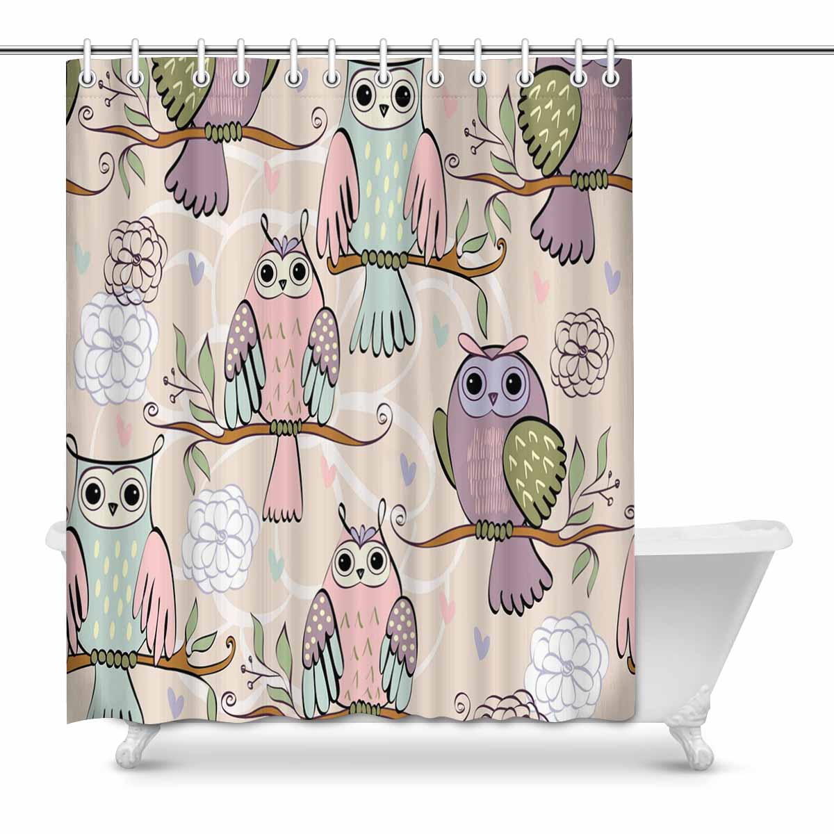 Bathroom Shower Curtain 60in x 72in with cute colorful owls