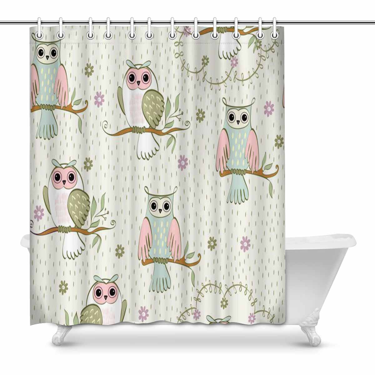 Bathroom Shower Curtain 60in x 72in with cute colorful owls pattern