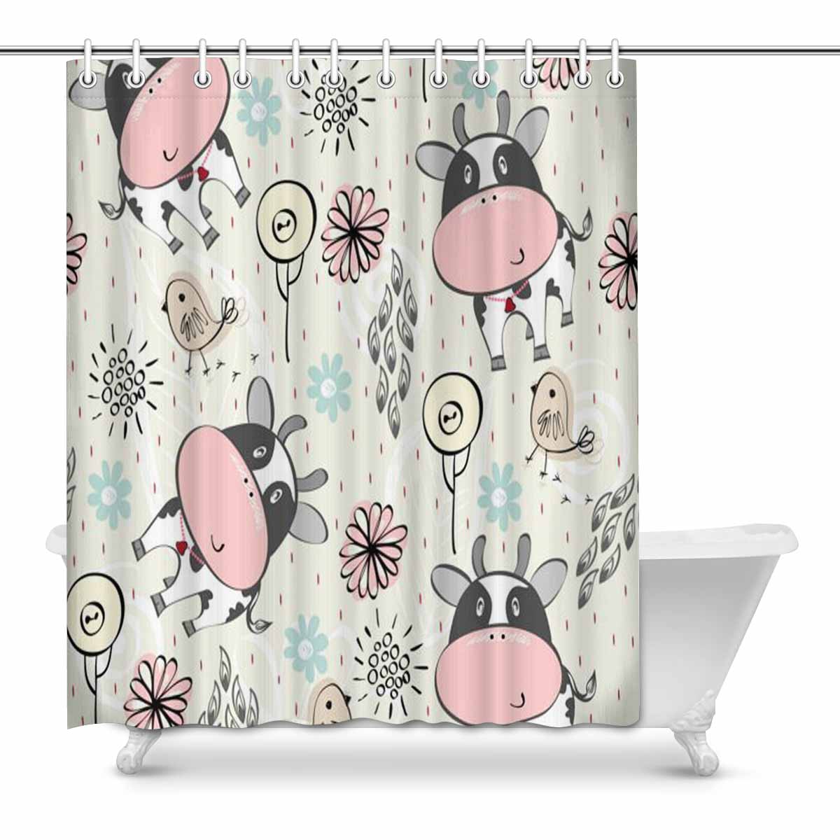 Bathroom Shower Curtain 60in x 72in with cute cows birds flowers pattern