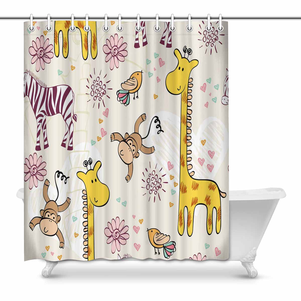 Bathroom Shower Curtain 60in x 72in with cute Giraffe monkey pattern