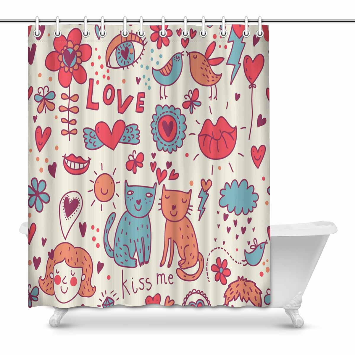 Bathroom Shower Curtain 60in x 72in with cute loves cats birds