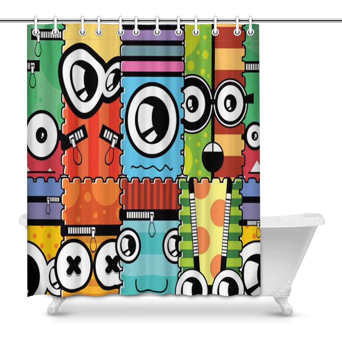 Bathroom Shower Curtain 60in x 72in with cute Monsters
