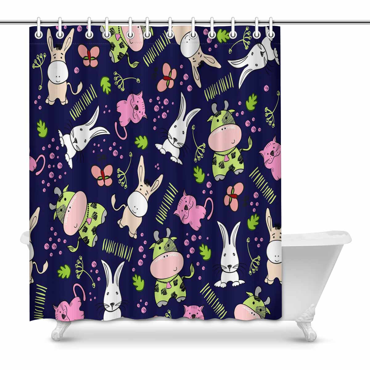 Bathroom Shower Curtain 60in x 72in with cute Rabbit cow cat pattern