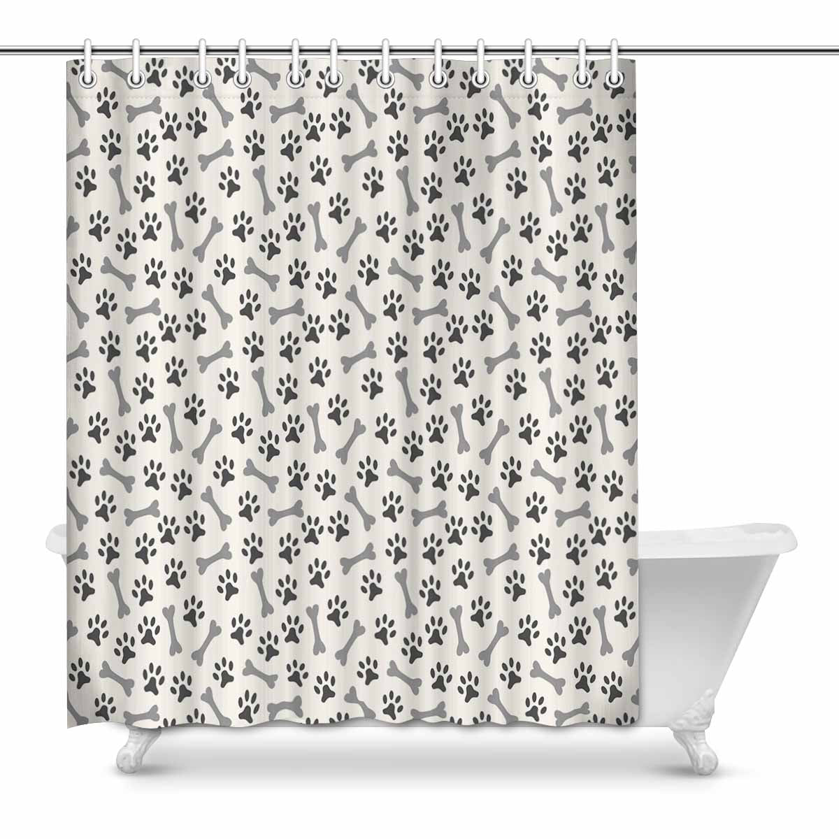 Bathroom Shower Curtain 60in x 72in with dogs paws bones pattern