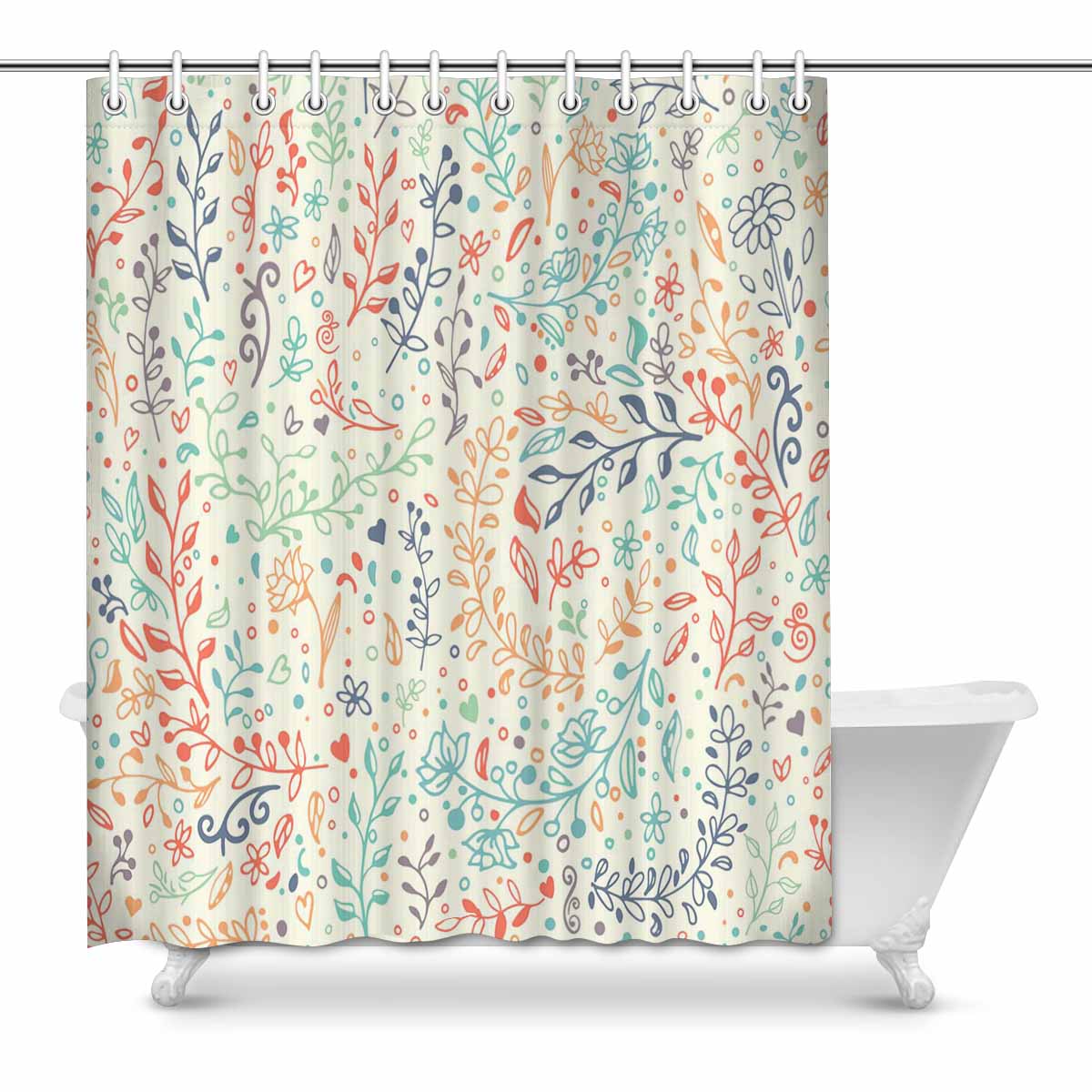 Bathroom Shower Curtain 60in x 72in with doodle floral pattern