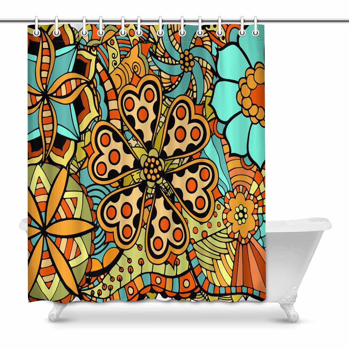 Bathroom Shower Curtain 60in x 72in with Doodle flowers and leafs pattern