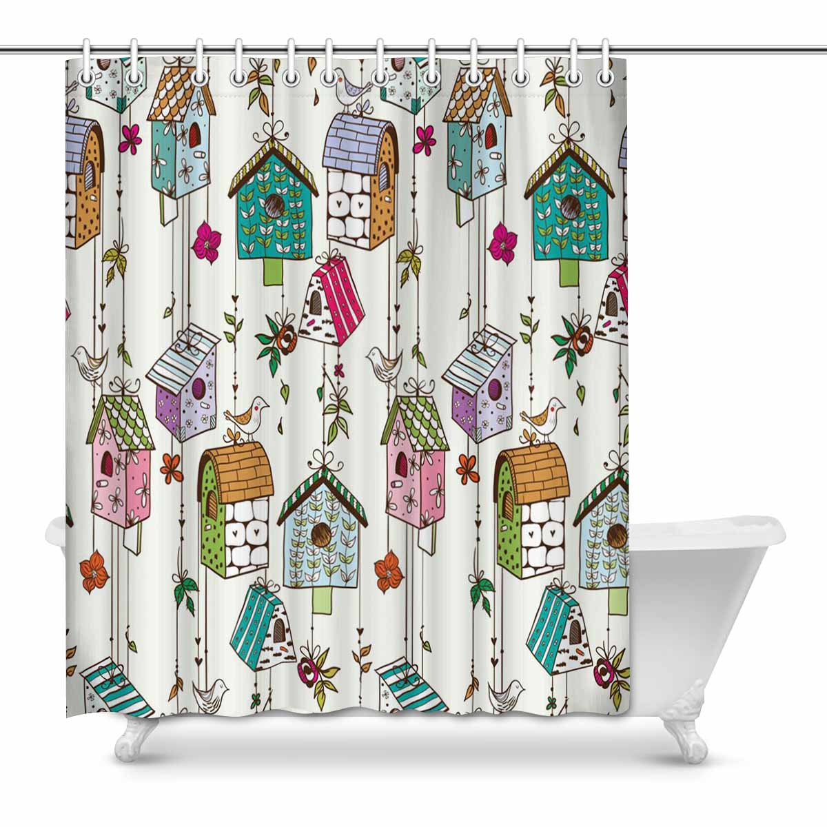 Bathroom Shower Curtain 60in x 72in with Doodle nesting boxes with birds