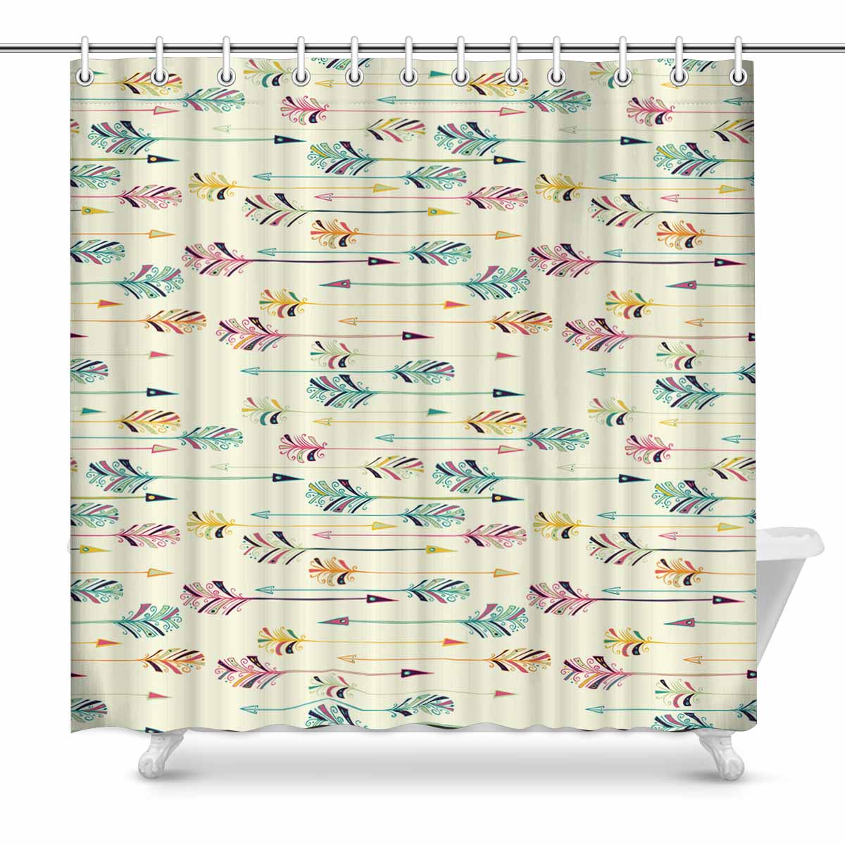 Shower Curtains Ethnic themed print with colored abstract feather arrows