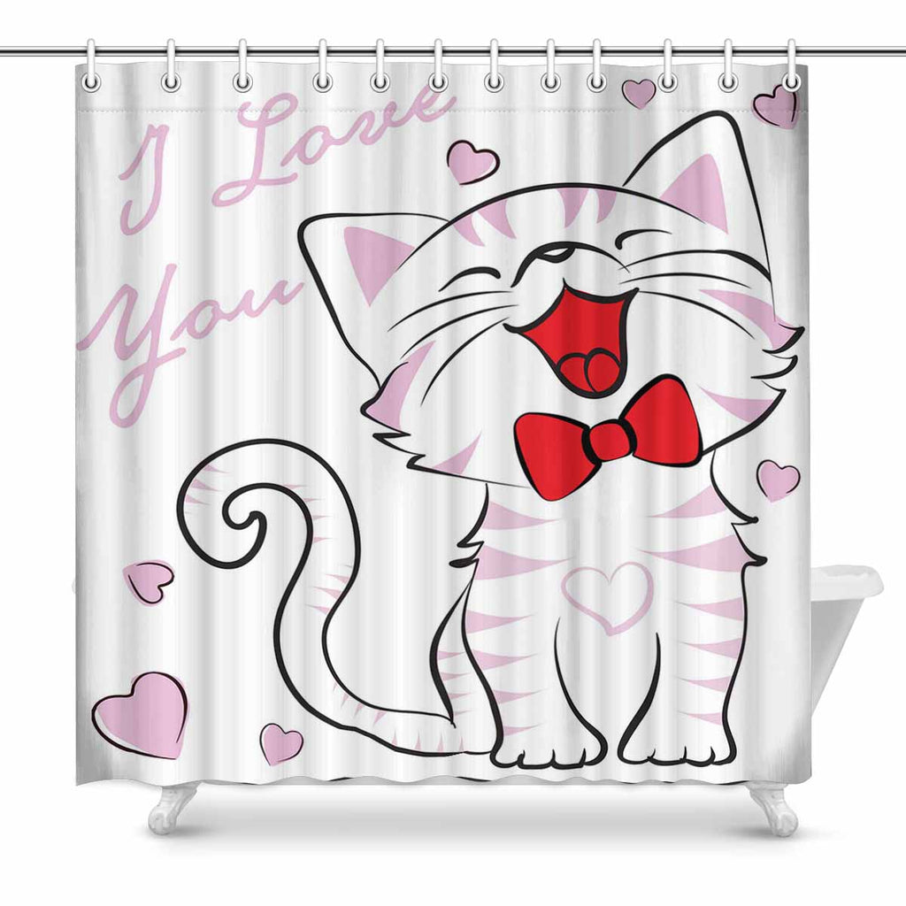 Shower Curtains print with colorful cats with curved tails