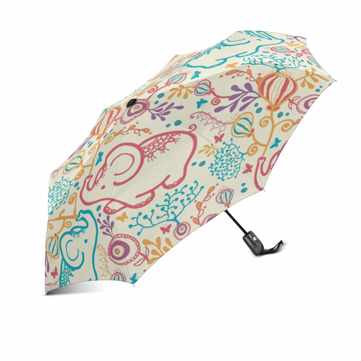 cute Elephants With Flowers pattern automatic umbrella foldable with totes