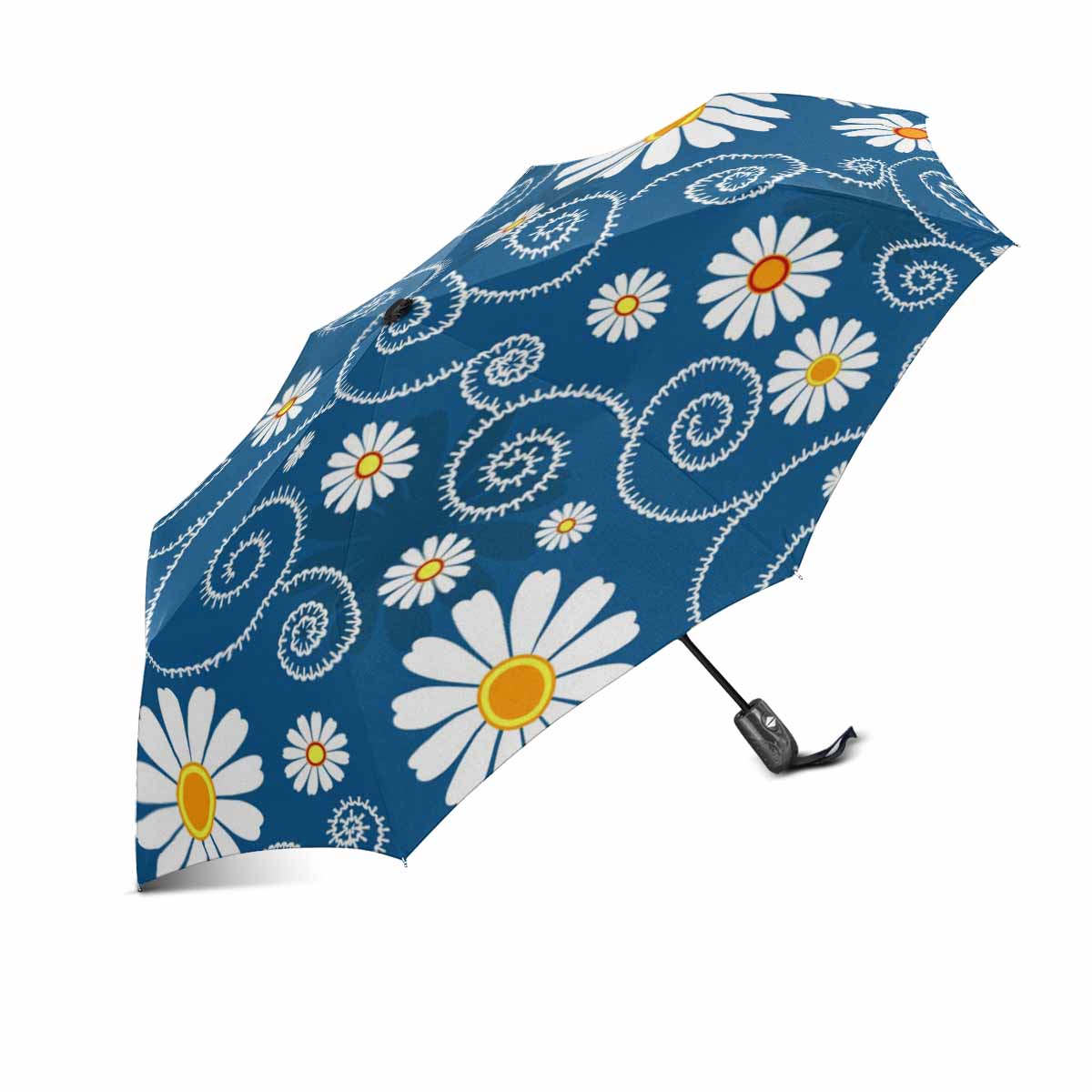 Dark blue floral pattern print Automatic Foldable Umbrella with totes