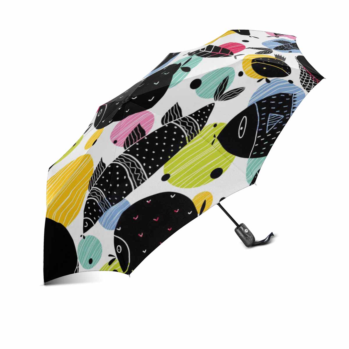 Decorative fish pattern travel umbrella automatic windproof foldable