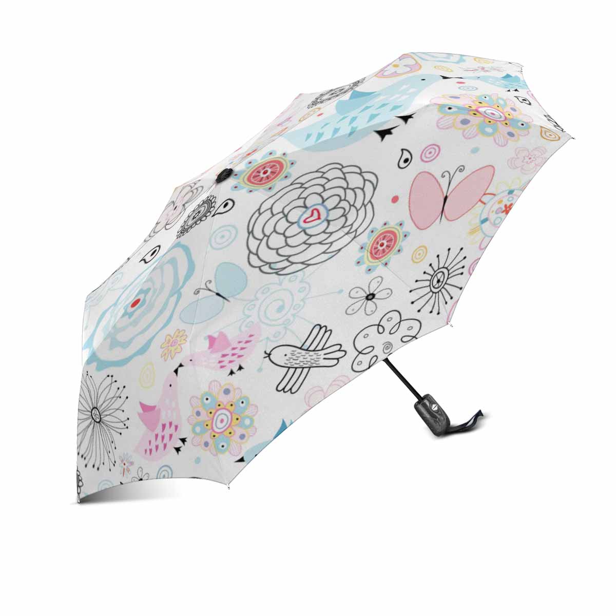 Floral pattern with birds in love print Automatic Foldable Umbrella with totes