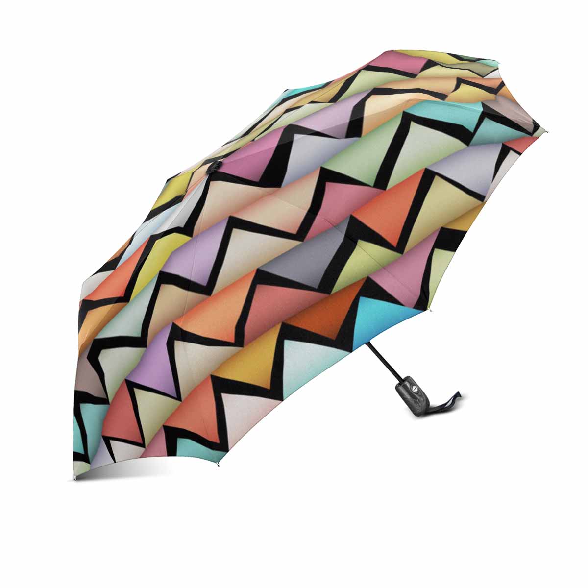 geometric pattern with zigzags automatic umbrella foldable with totes