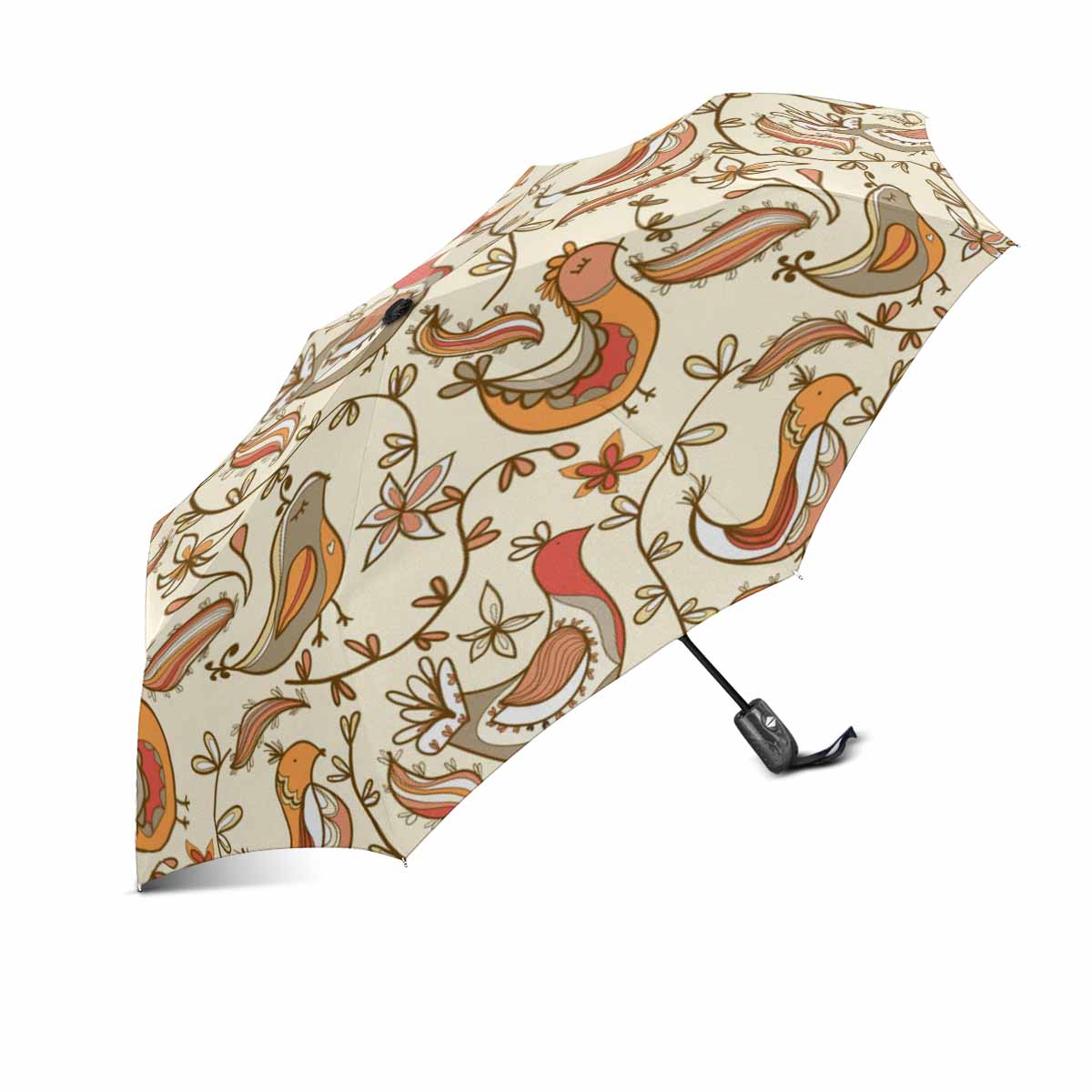 graphic leaf flowers and birds pattern travel umbrella automatic windproof foldable
