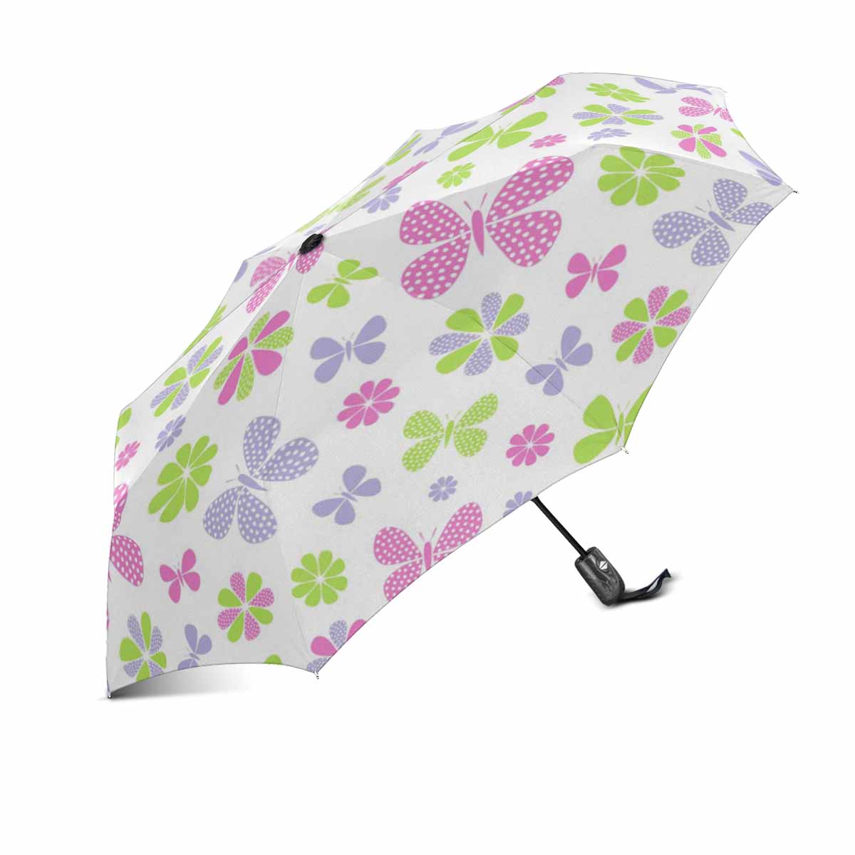 pattern with flowers and butterflies Umbrella Automatic Foldable with totes