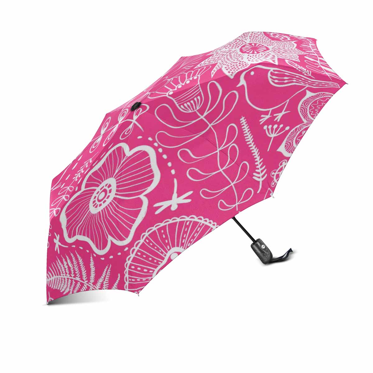 pink flowers and butterflies pattern print Umbrella Automatic Foldable with totes