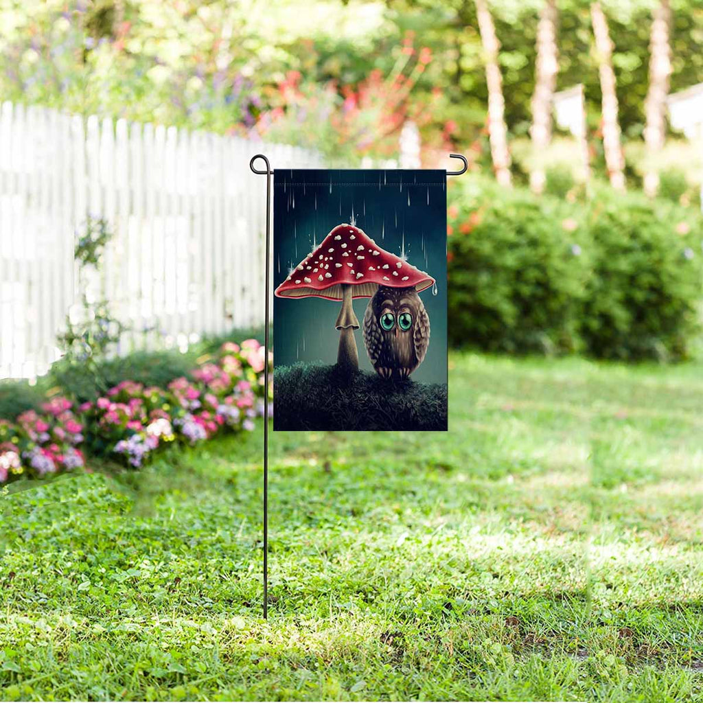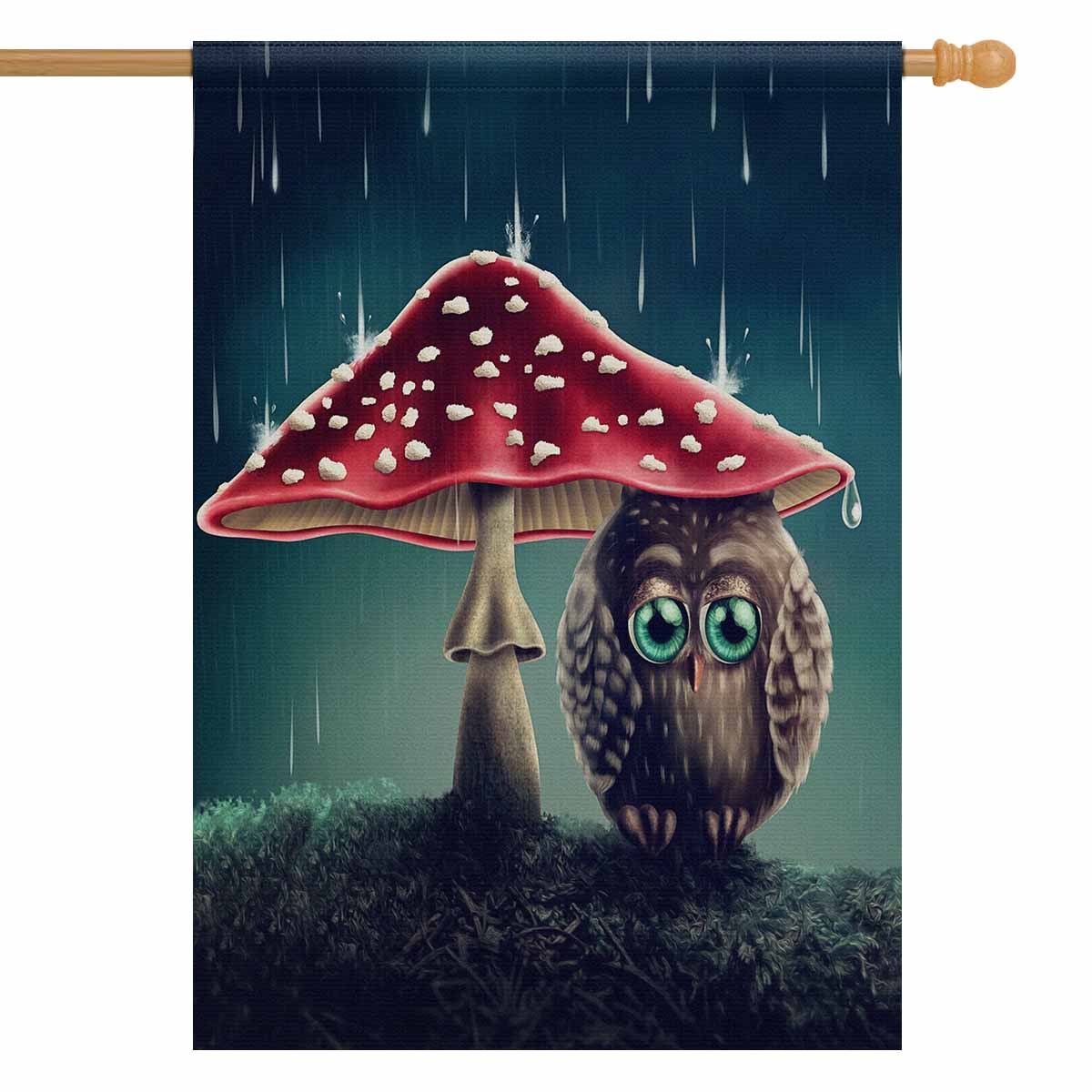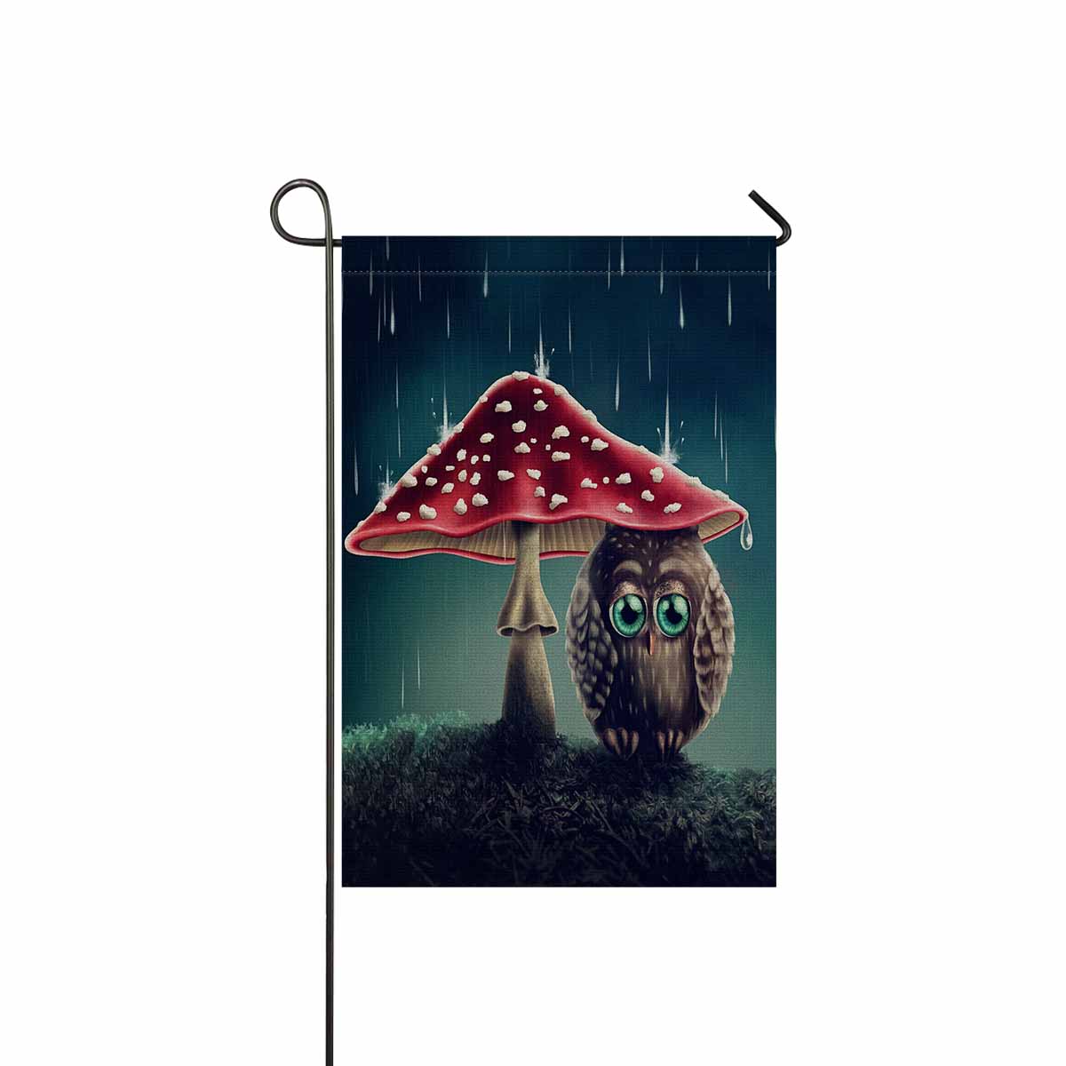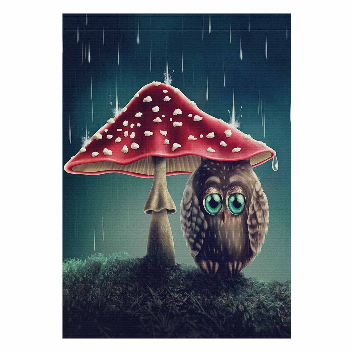Garden Flags printed animals themed with Little owl sitting under mushrooms