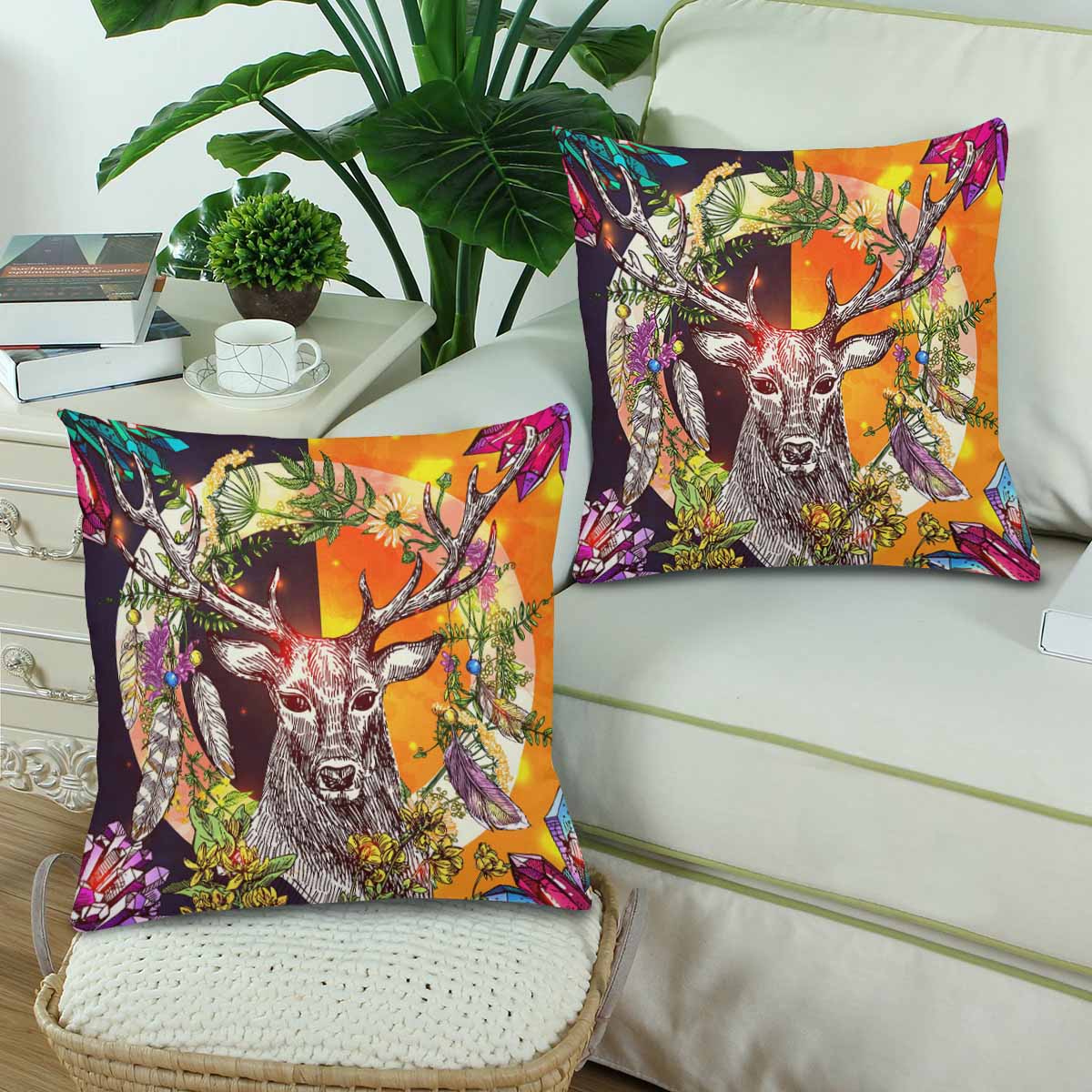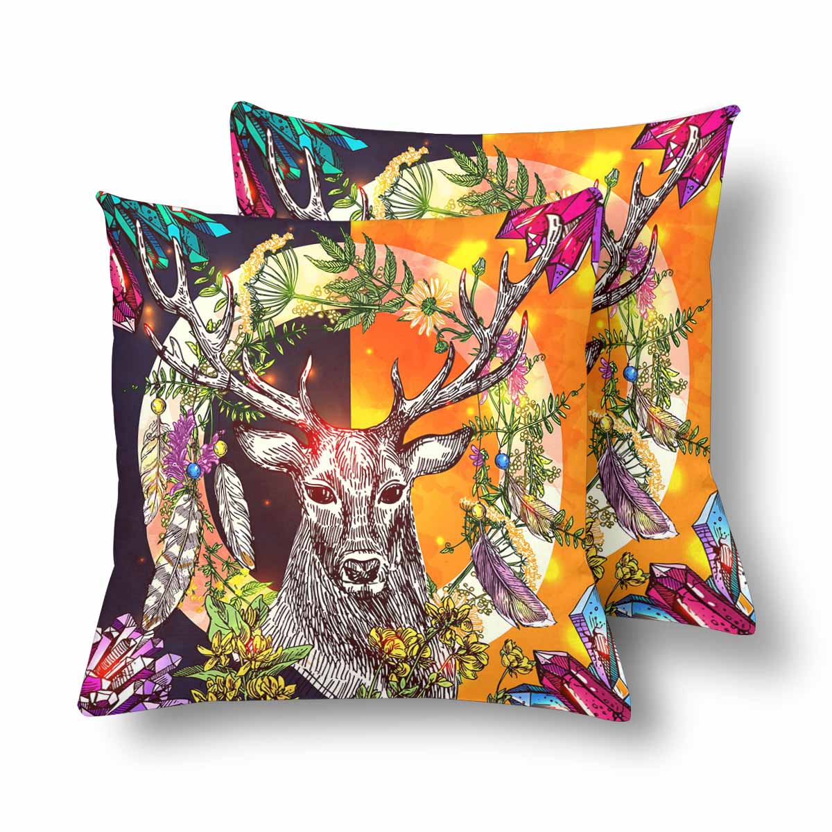 Animals themed Pillow Cases printed with Boho style illustration with deer wildflowers and crystal