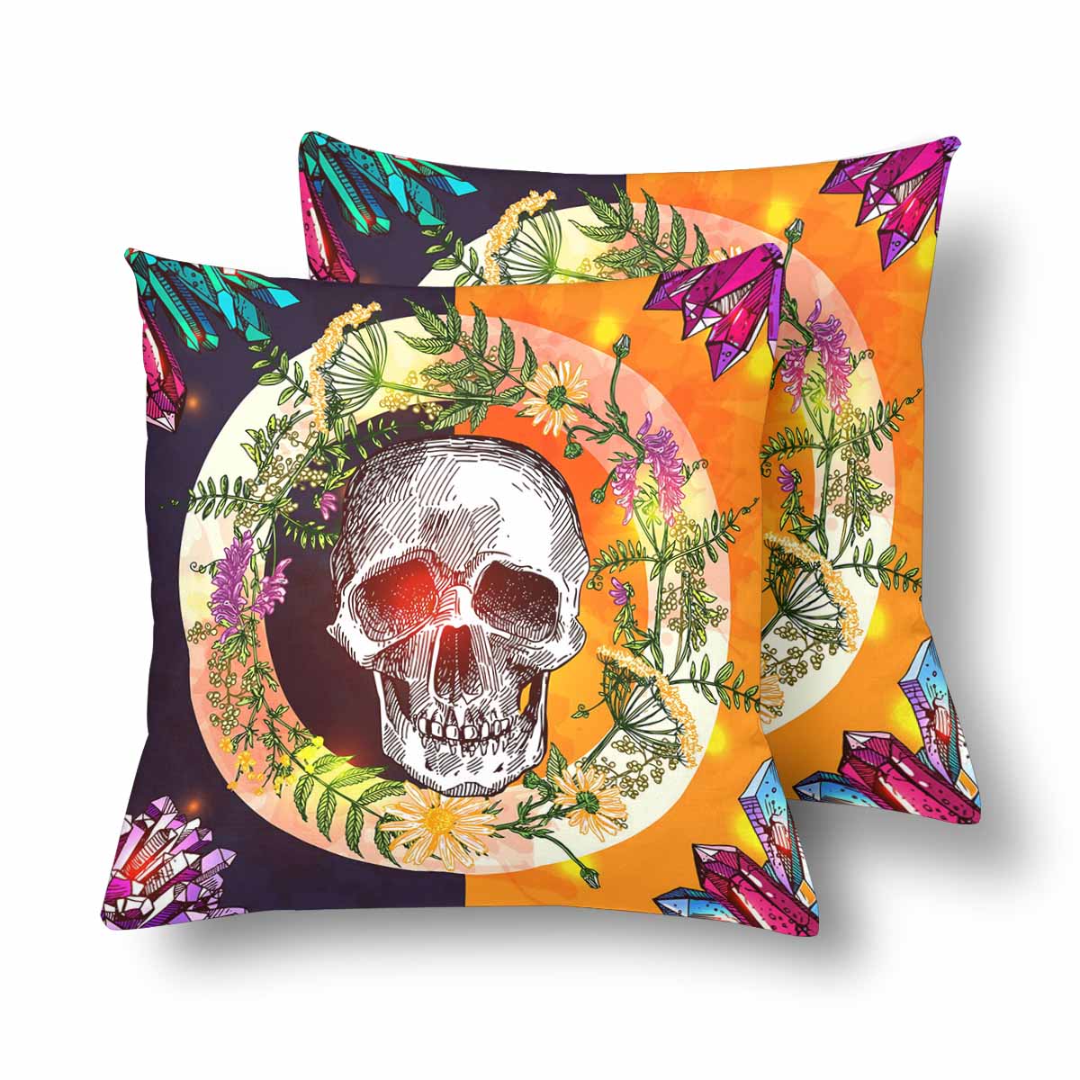 Animals themed Pillow Cases printed with Boho style illustration with skull wildflowers and crystal