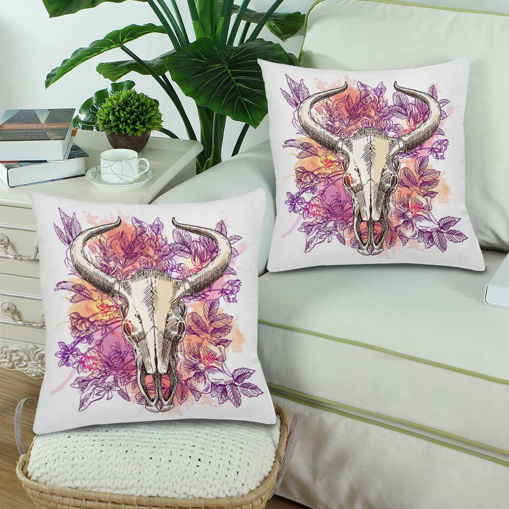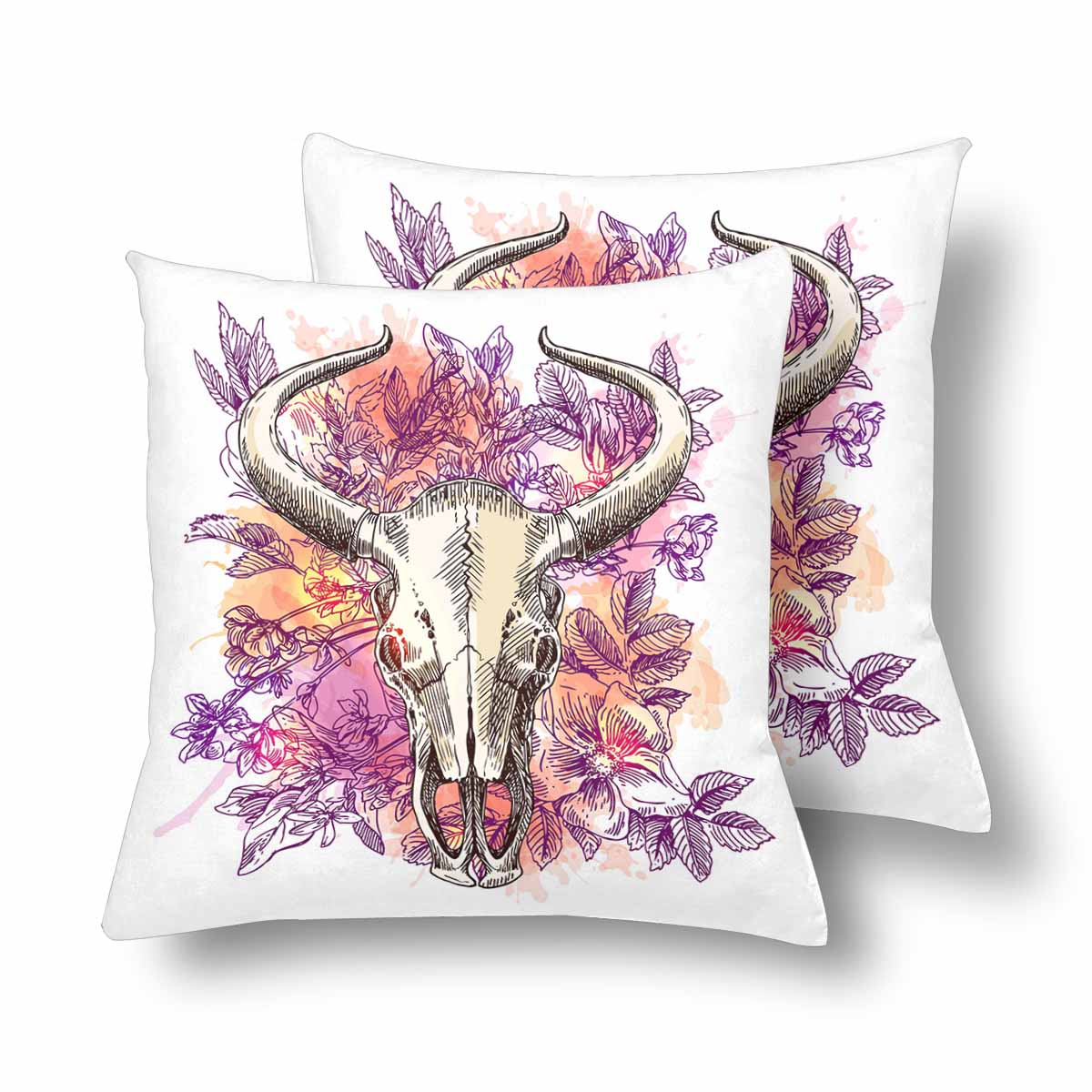 Animals themed Pillow Cases printed with Boho Style sketch illustration the skull of a bull and flowers