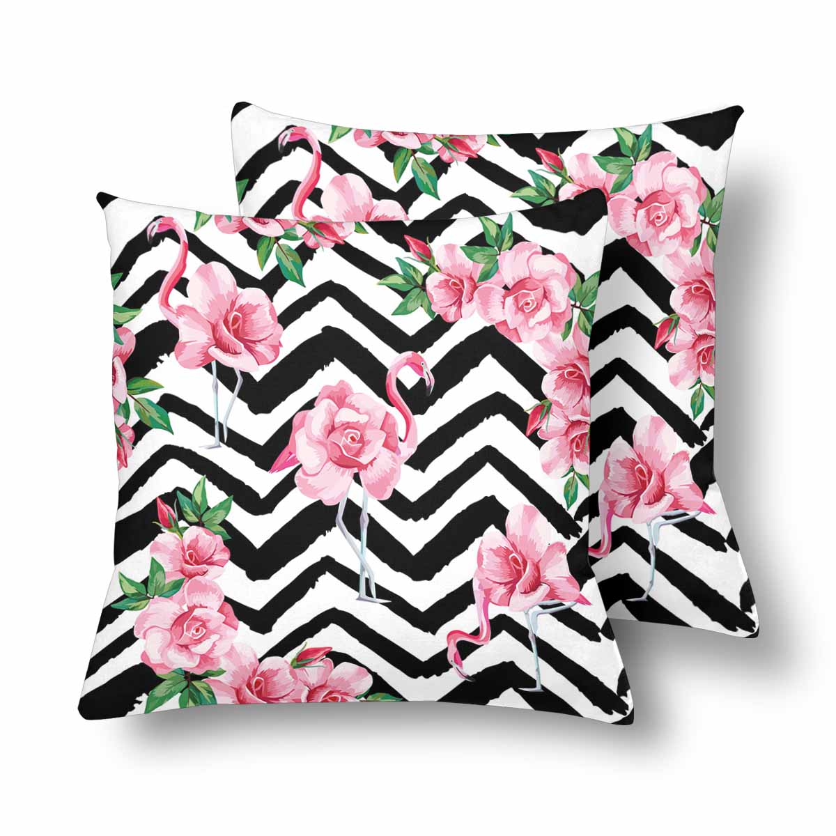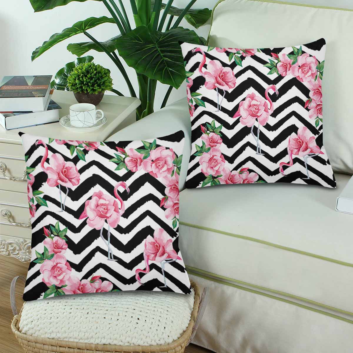 Animals themed Pillow Cases printed with Flamingo roses with black white zigzag