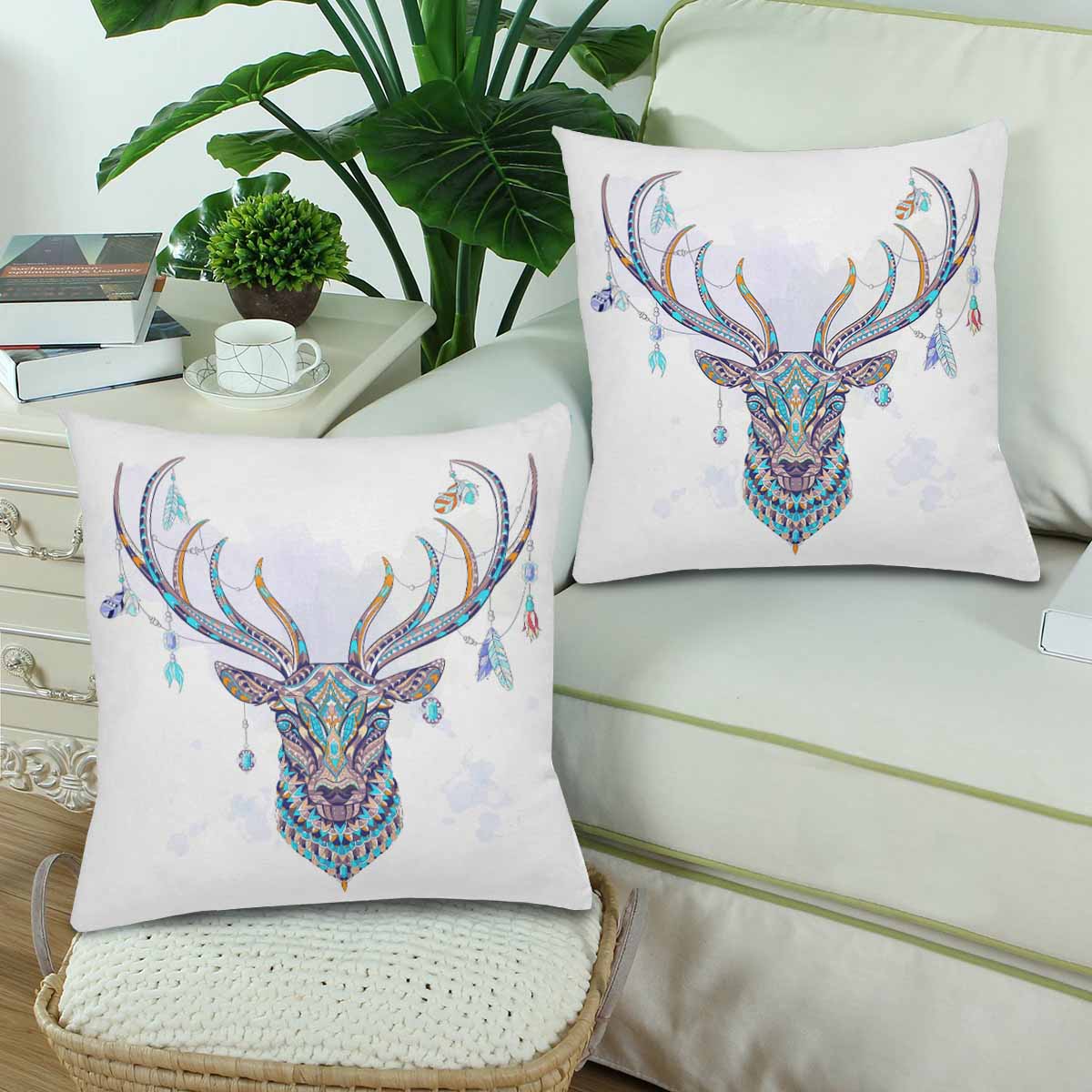 Animals themed Pillow Cases printed with Patterned head of the deer on the grunge background