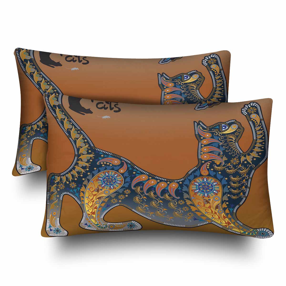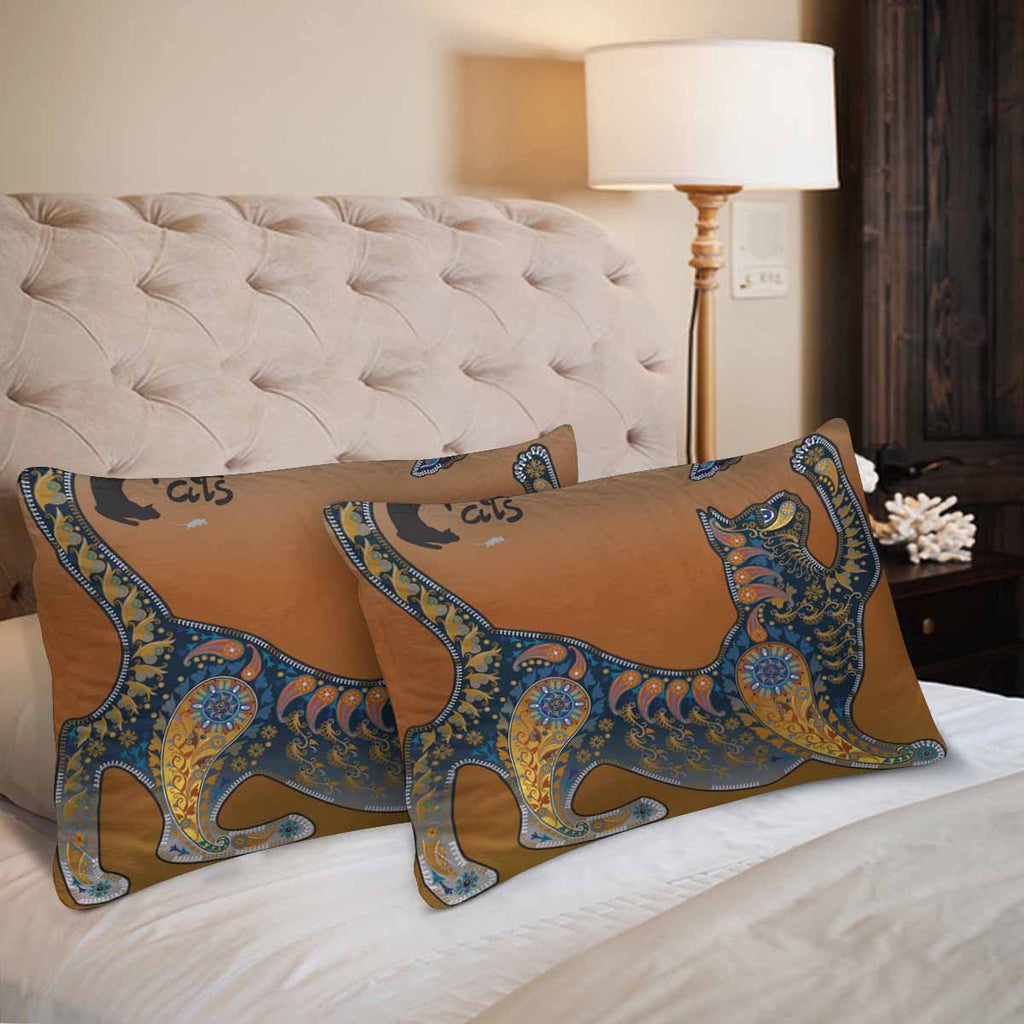 Animals themed Rectangle Pillow Cases printed a graphic cat playing with a bird