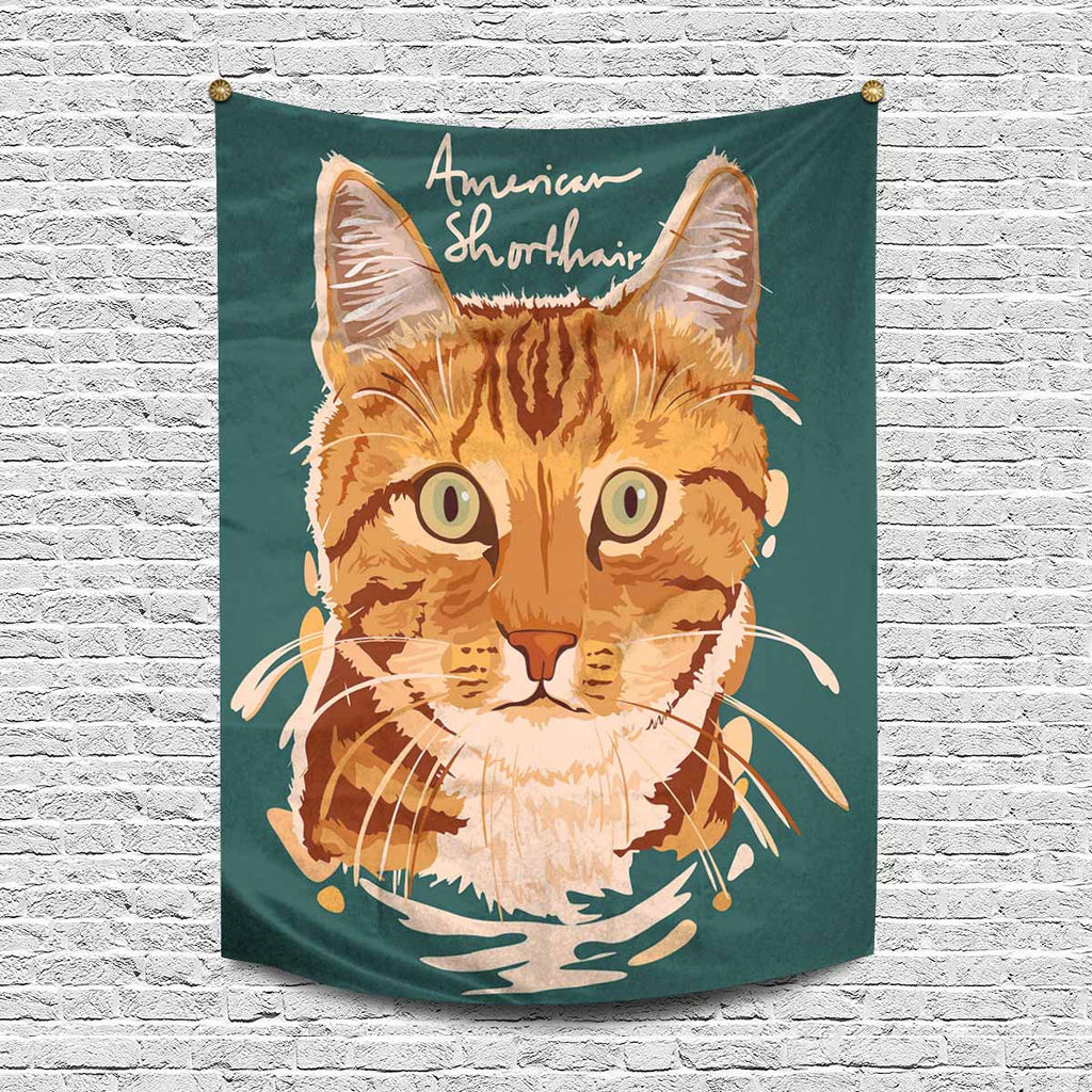 Animals themed long Wall Tapestry print with American Shorthair Painting Poster