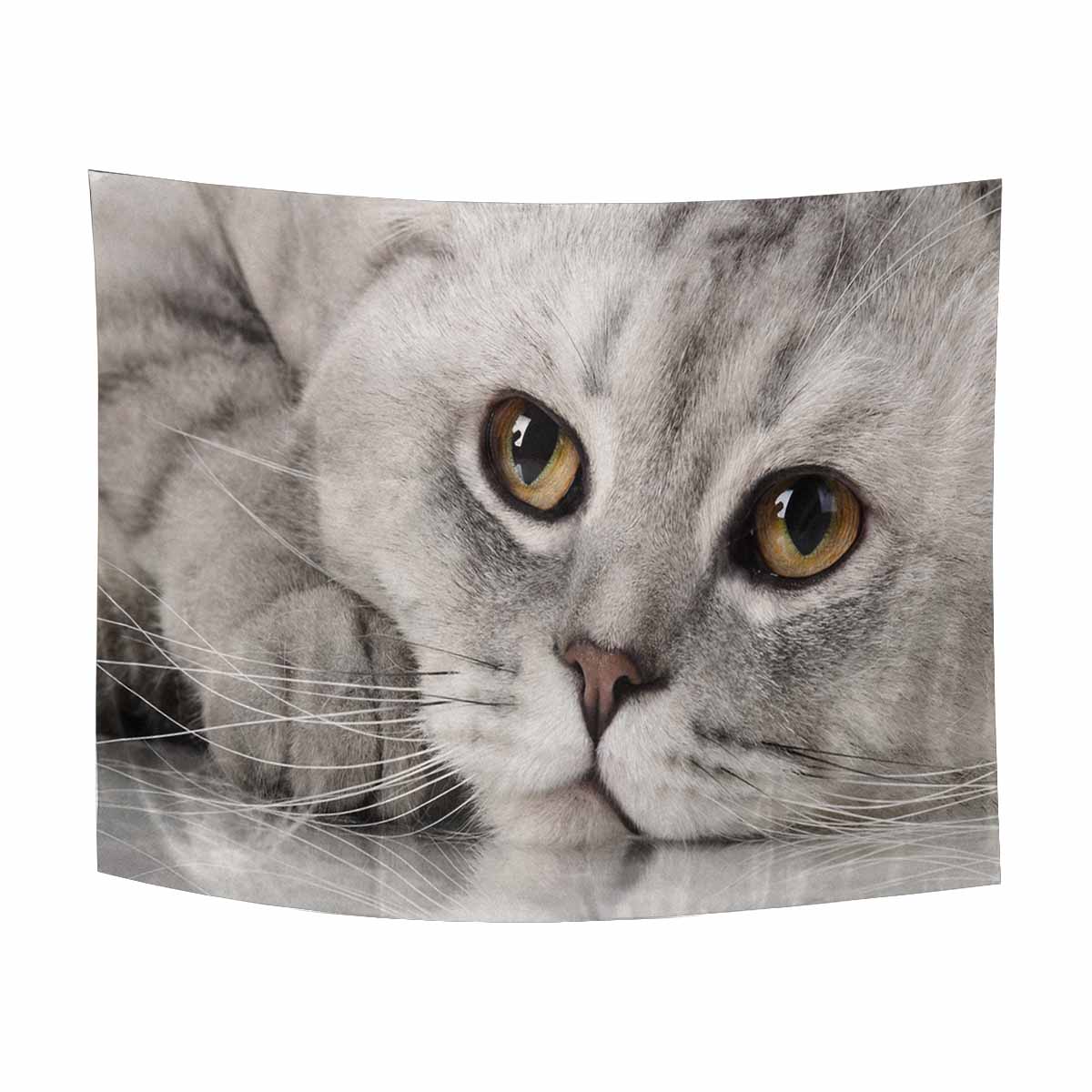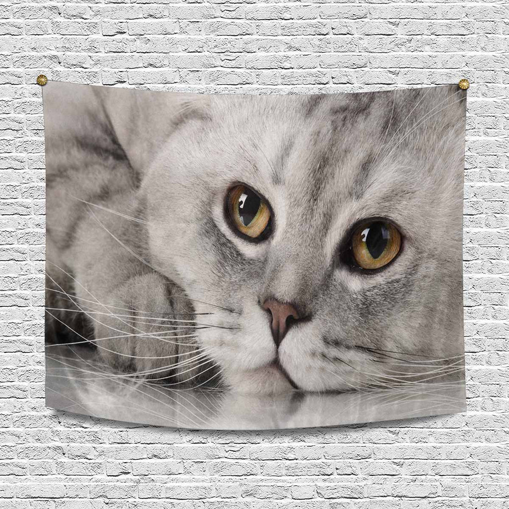 Animals themed Wall Tapestries print with Close Up fluffy gray beautiful adult cat