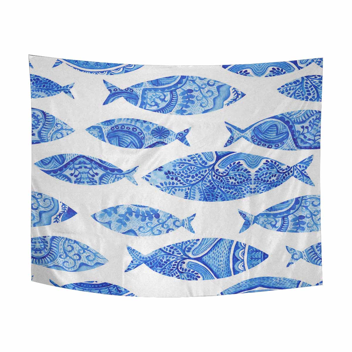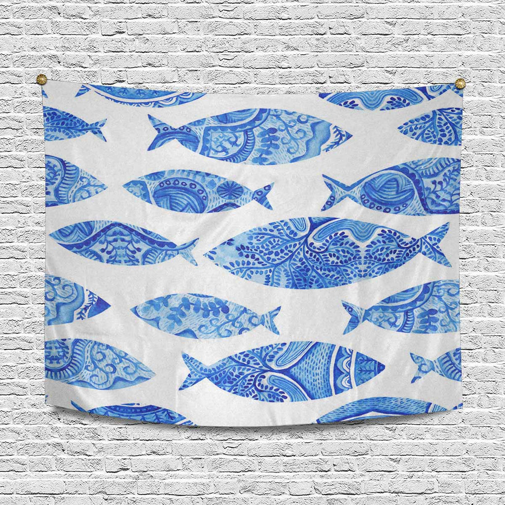 Animals themed Wall Tapestries print with watercolor stylized blue fish