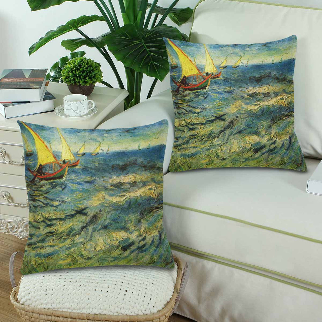 Arts themed Pillow Cases printed with Vincent Van Gogh The sea at Saint-Marie