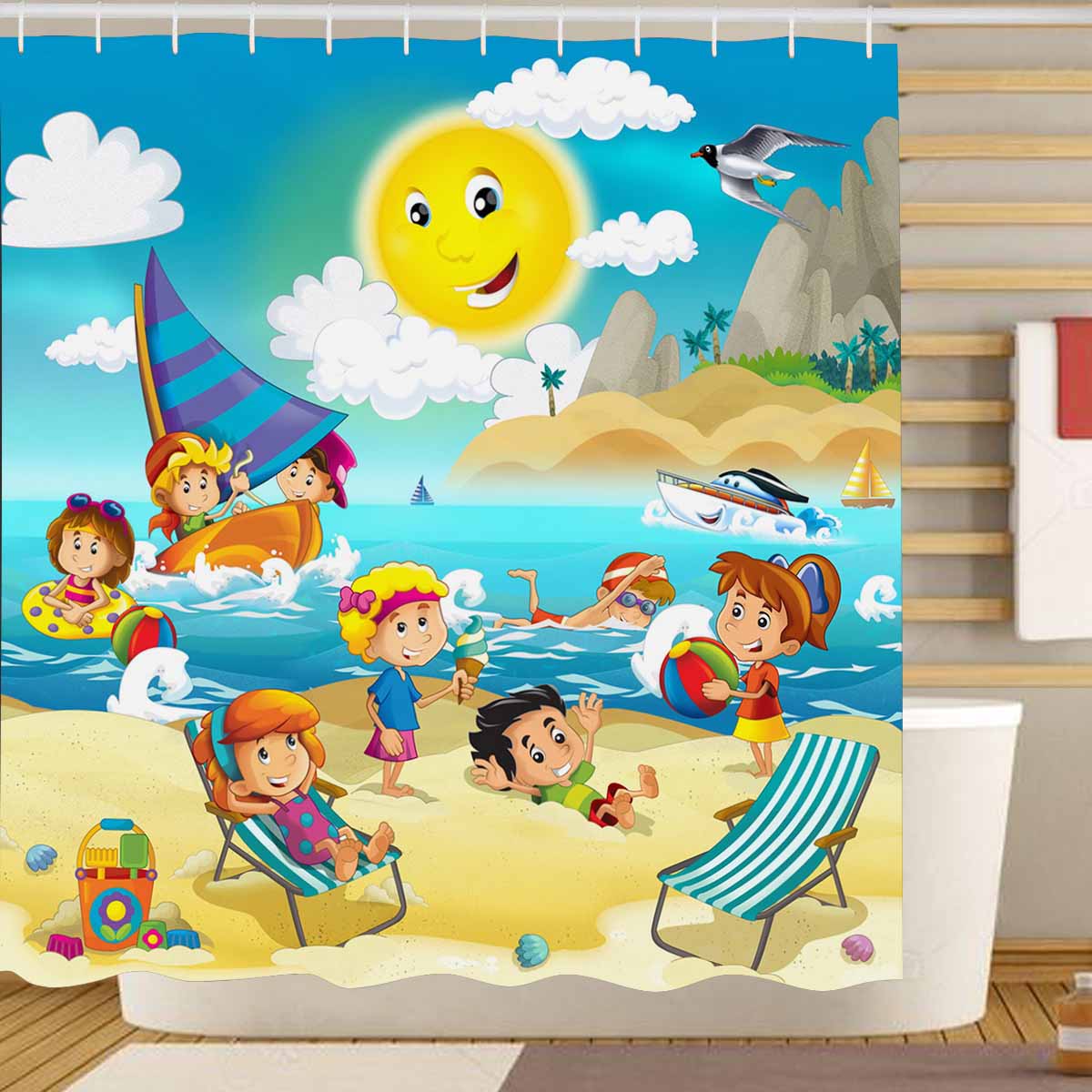 Beach and Ocean themed print on shower curtains for bathroom, create a brilliant atmosphere in your bathroom, include a selection of different stylish and custom-made designs for your bath decoration.