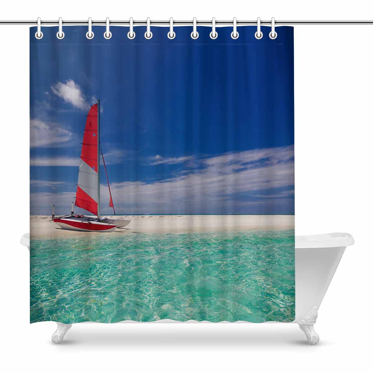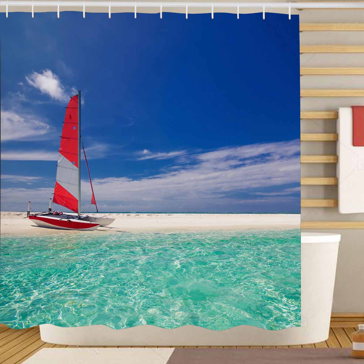 Beach and Ocean themed print on shower curtains for bathroom, create a brilliant atmosphere in your bathroom, include a selection of different stylish and custom-made designs for your bath decoration.