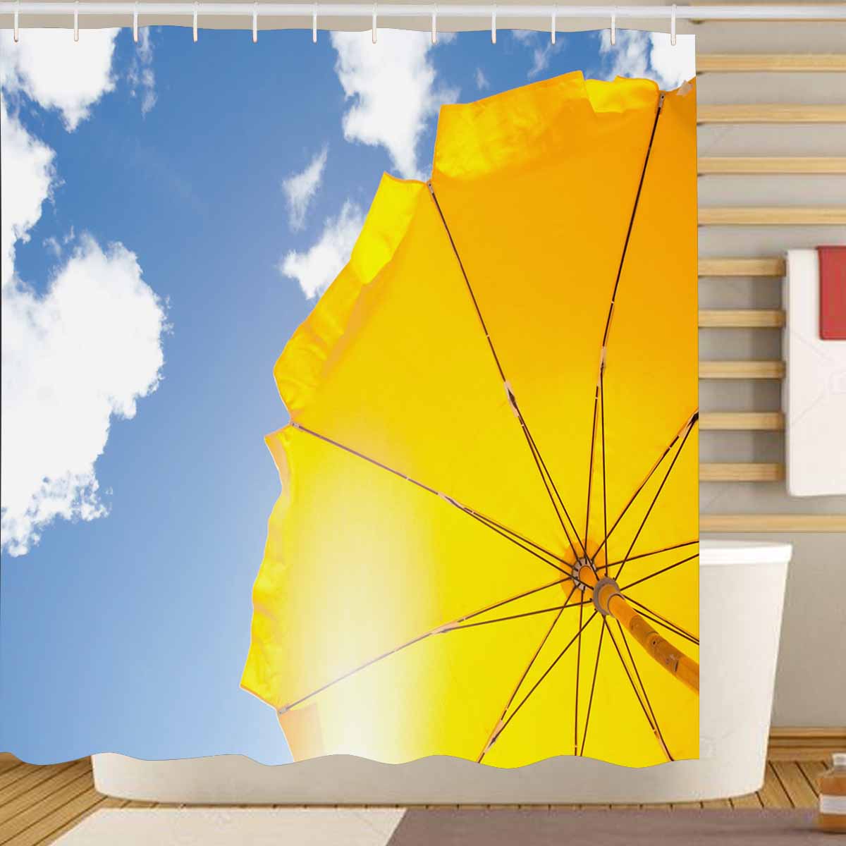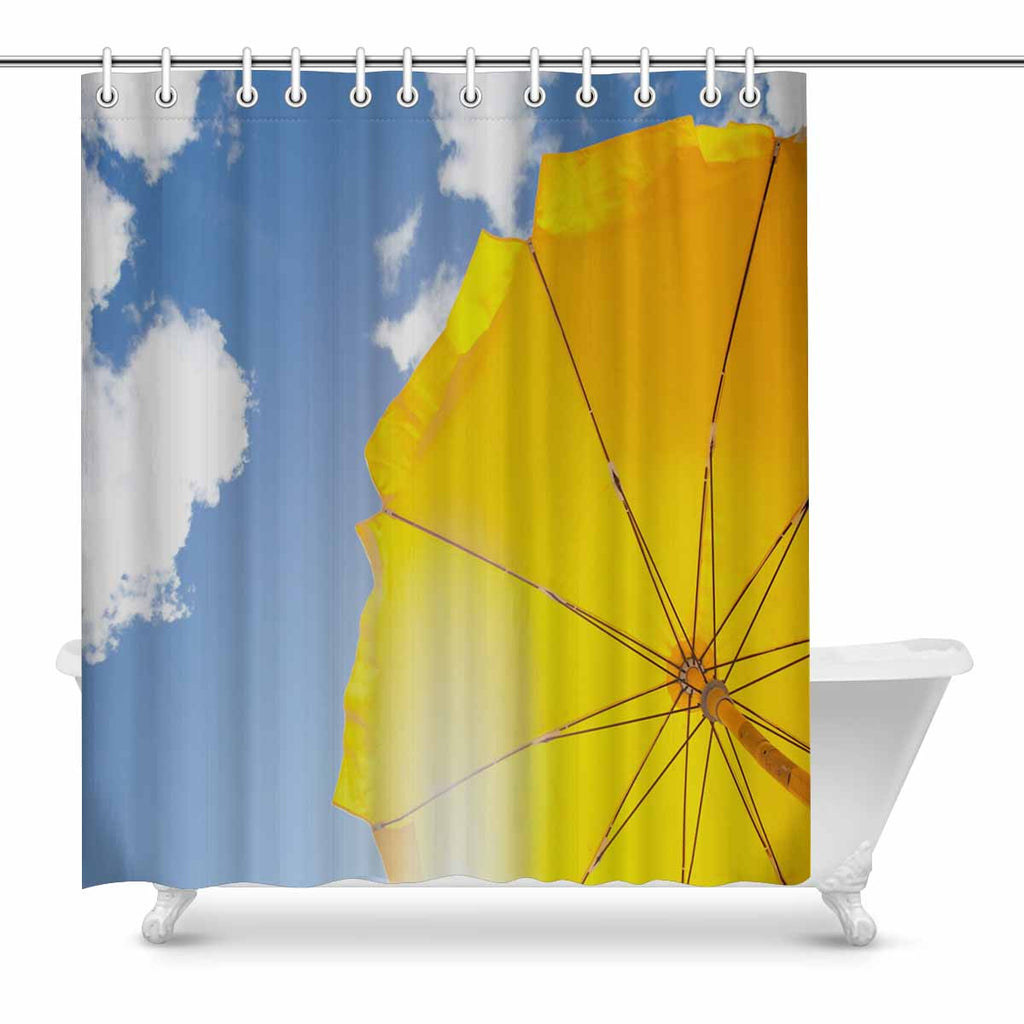 Shower Curtains print with Yellow umbrella on blue sky