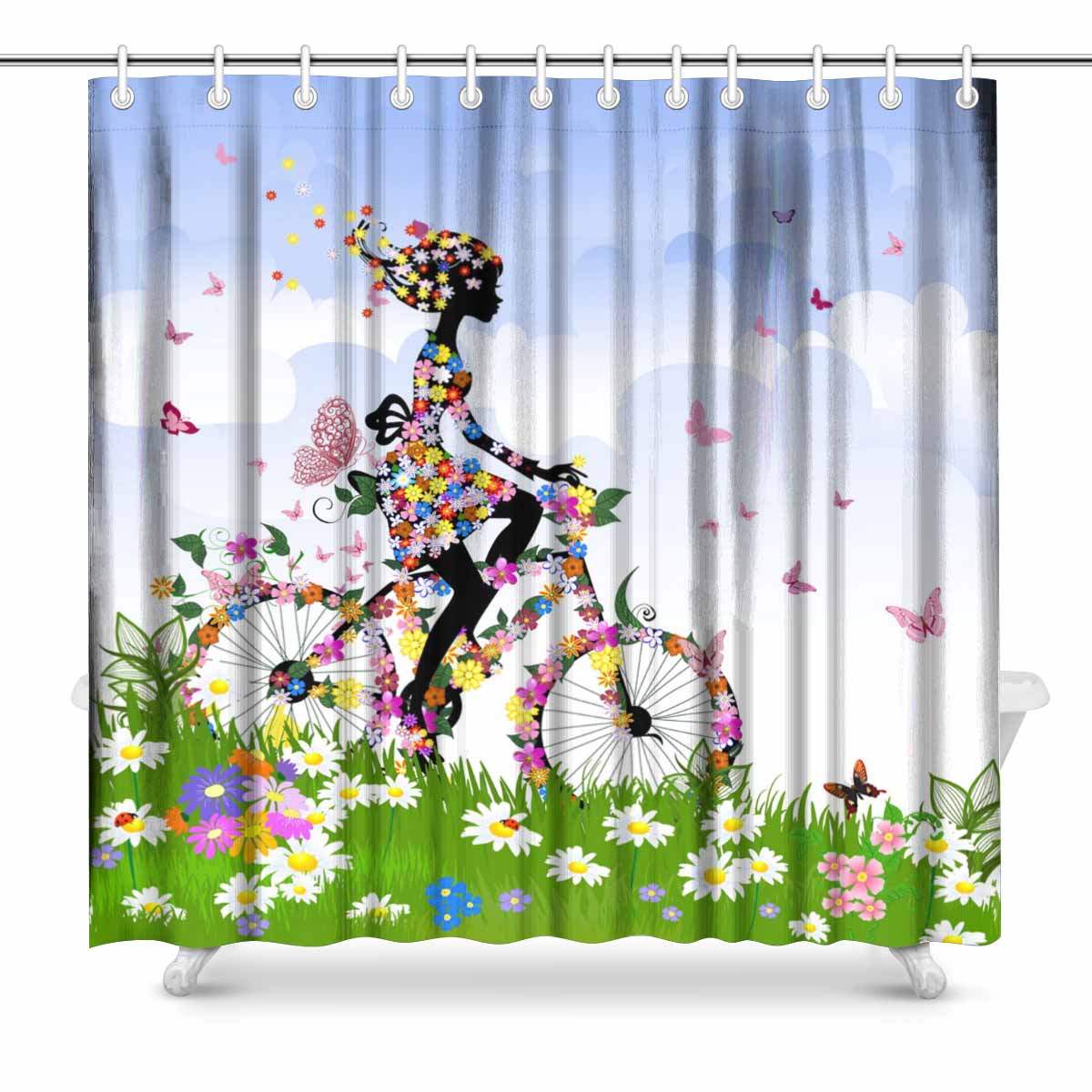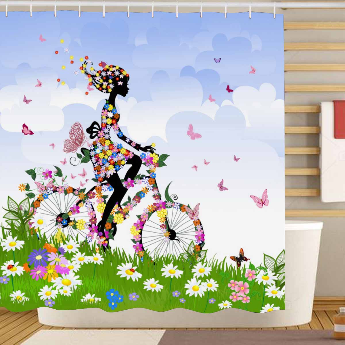 Butterflies and Birds themed print on shower curtains for bathroom,