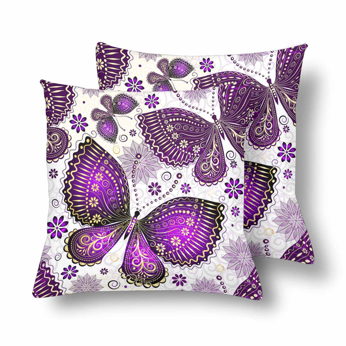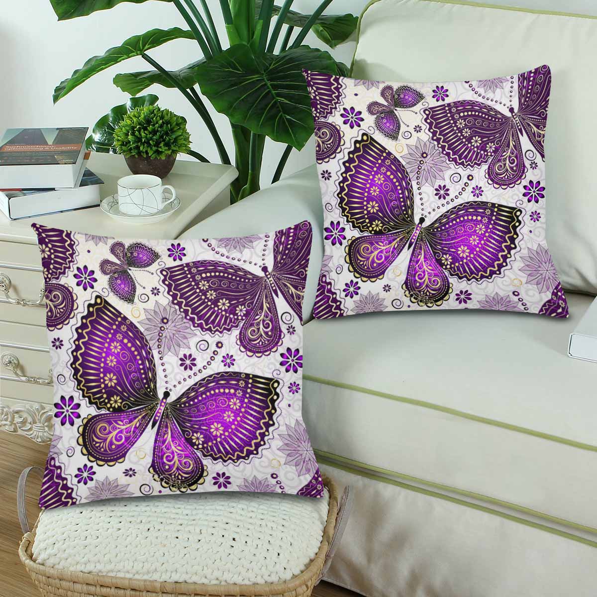 Butterfly and Birds themed Pillow Cases printed with violet-gold butterflies and flowers