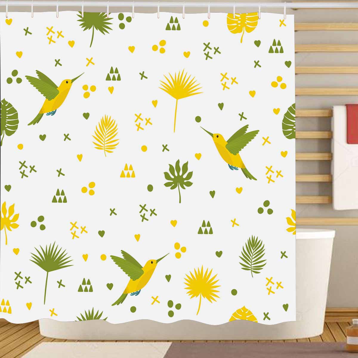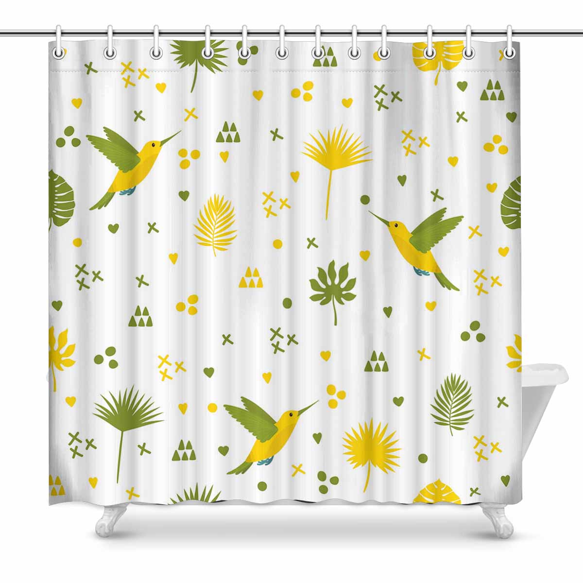 Themed for Kids Shower Curtains print with hummingbird and leaves