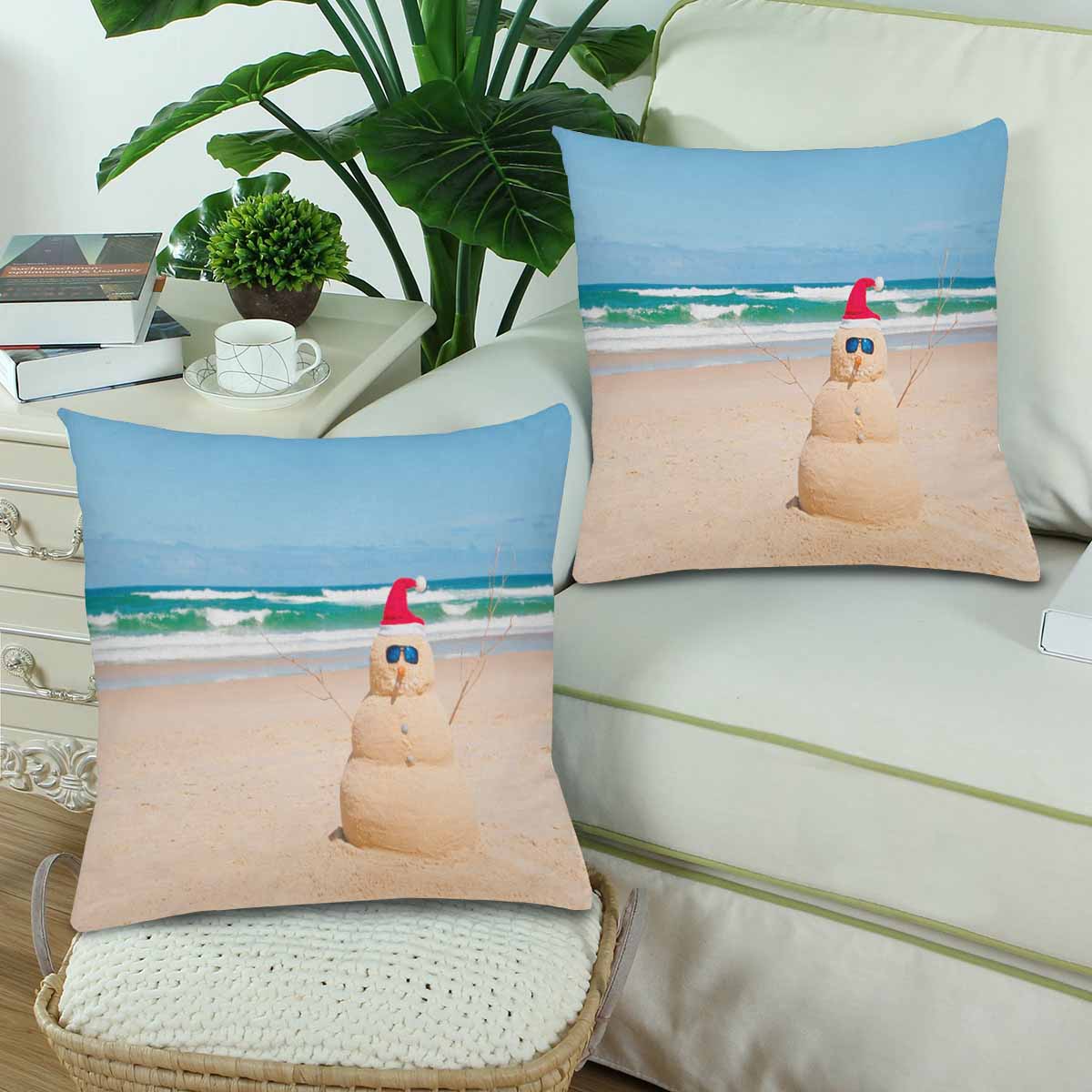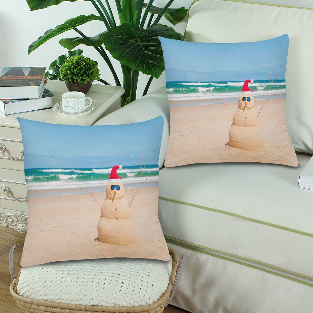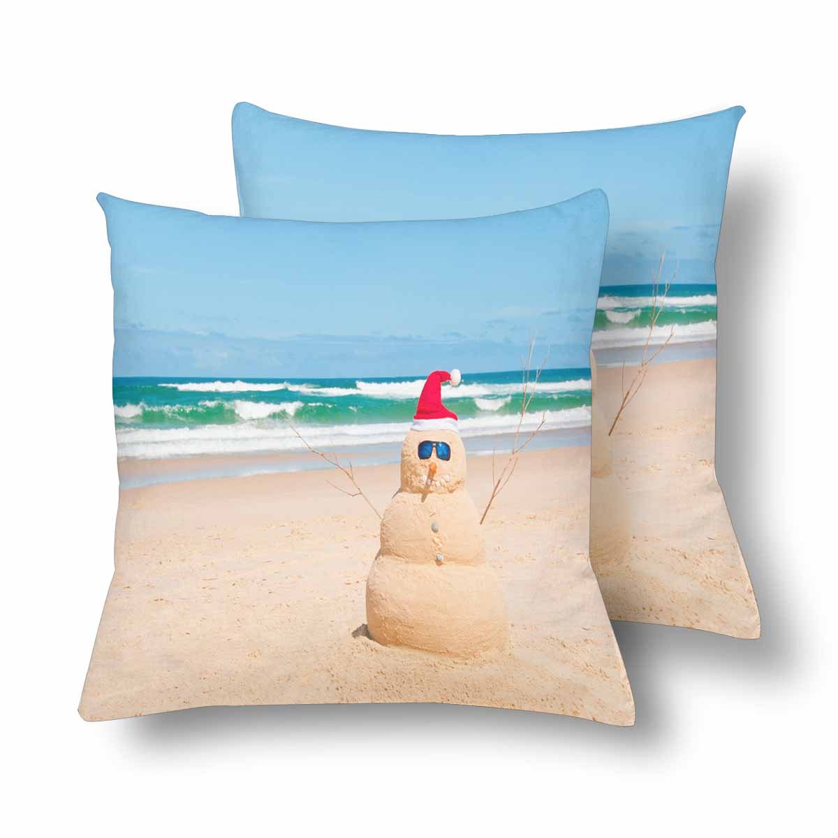 Christmas themed Pillow Cases printed with Snowman with santa hat made out of sand