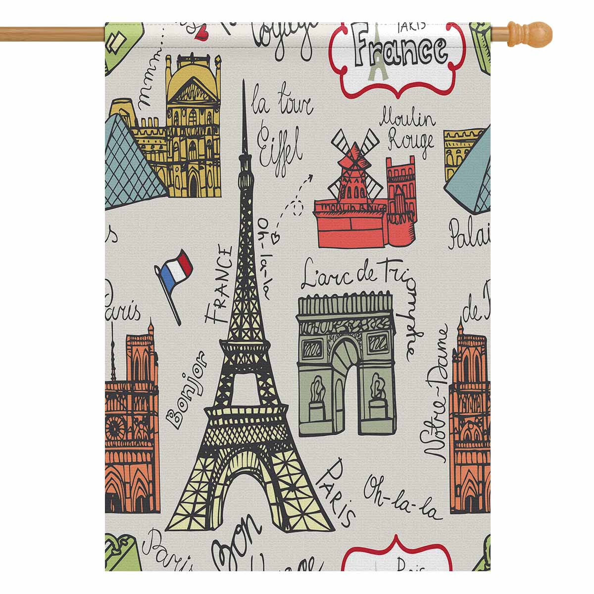 Garden Flags printed Coutry themed with Paris landmark and lettering