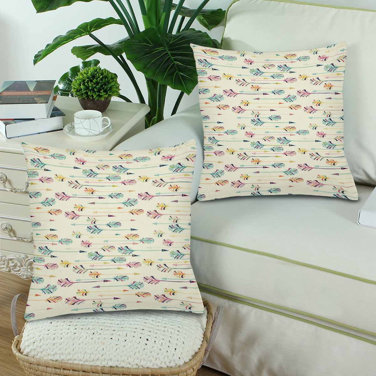 Ethnic themed Pillow Cases printed with colored abstract feather arrows