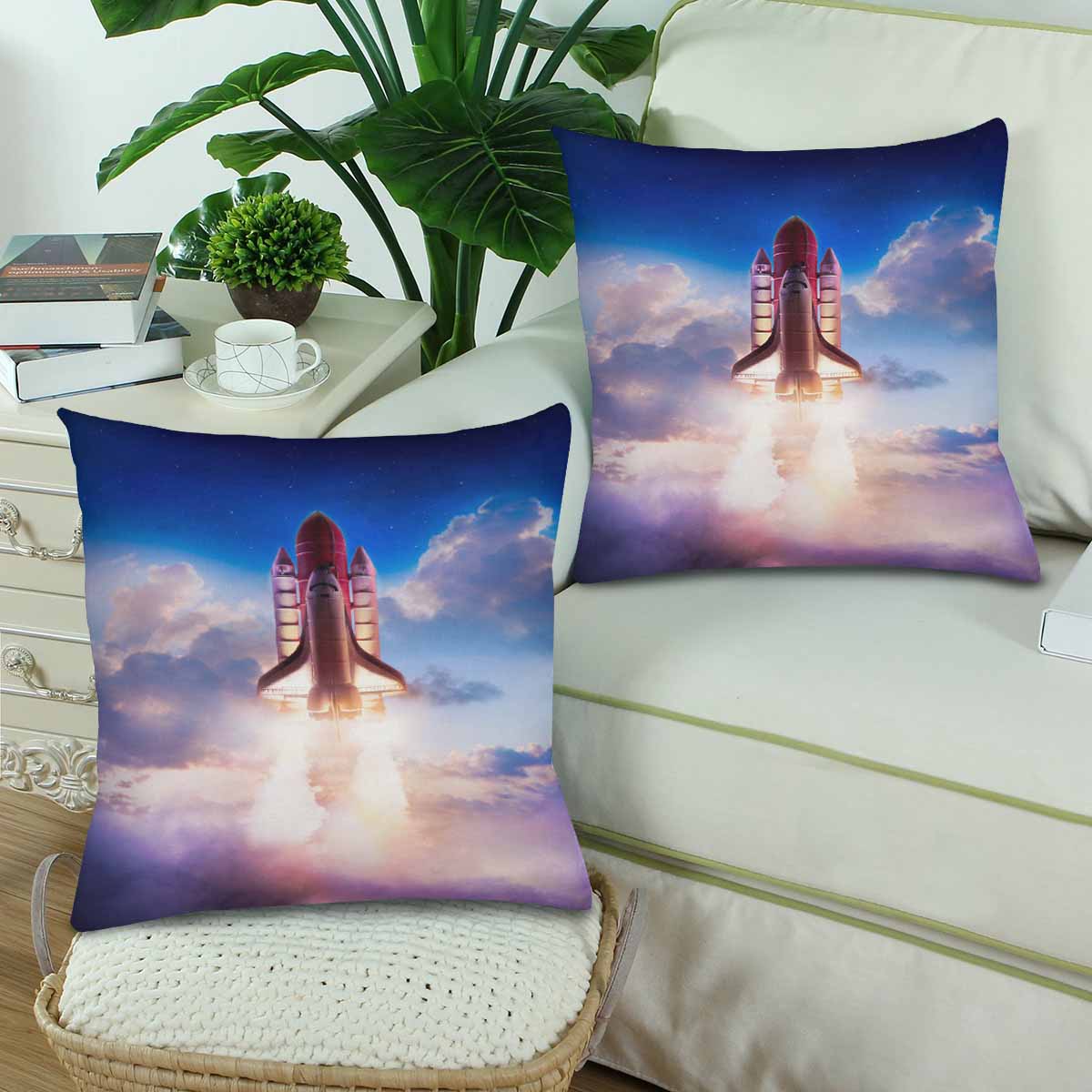 Galaxy themed Pillow Cases printed with Space shuttle taking off on a mission
