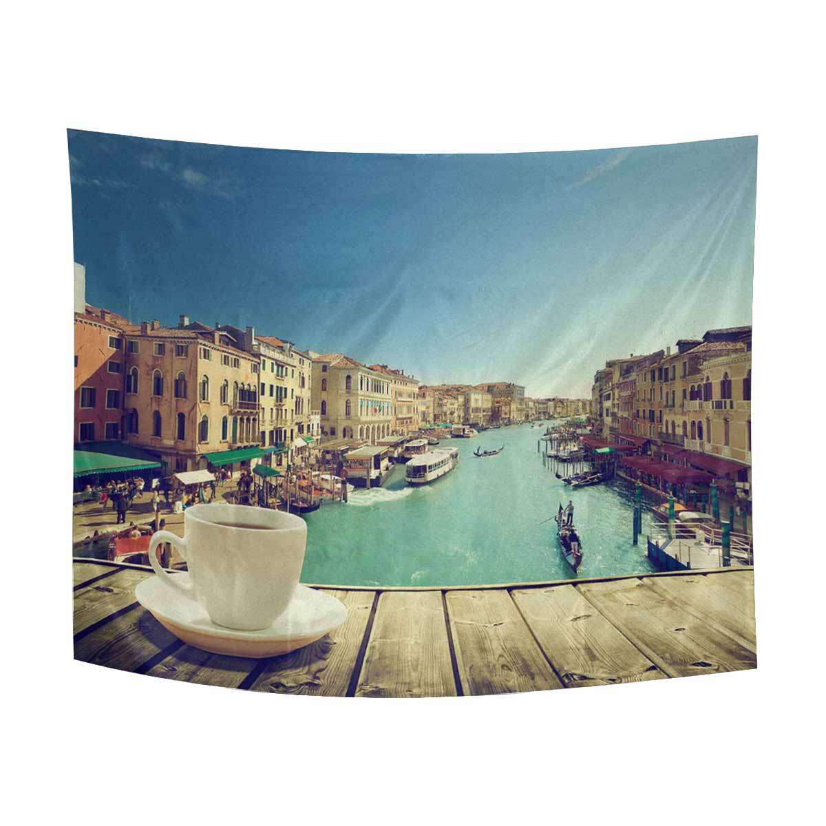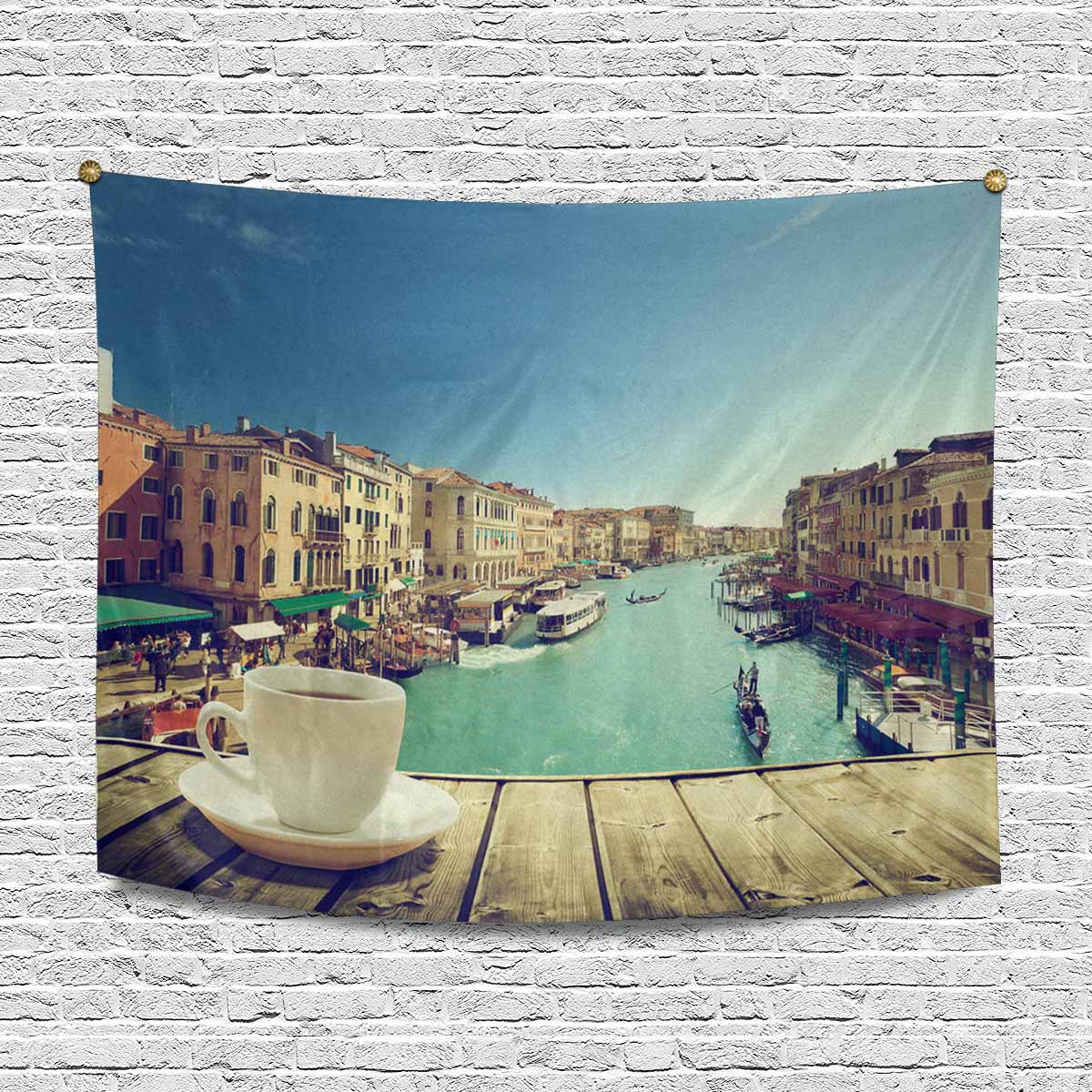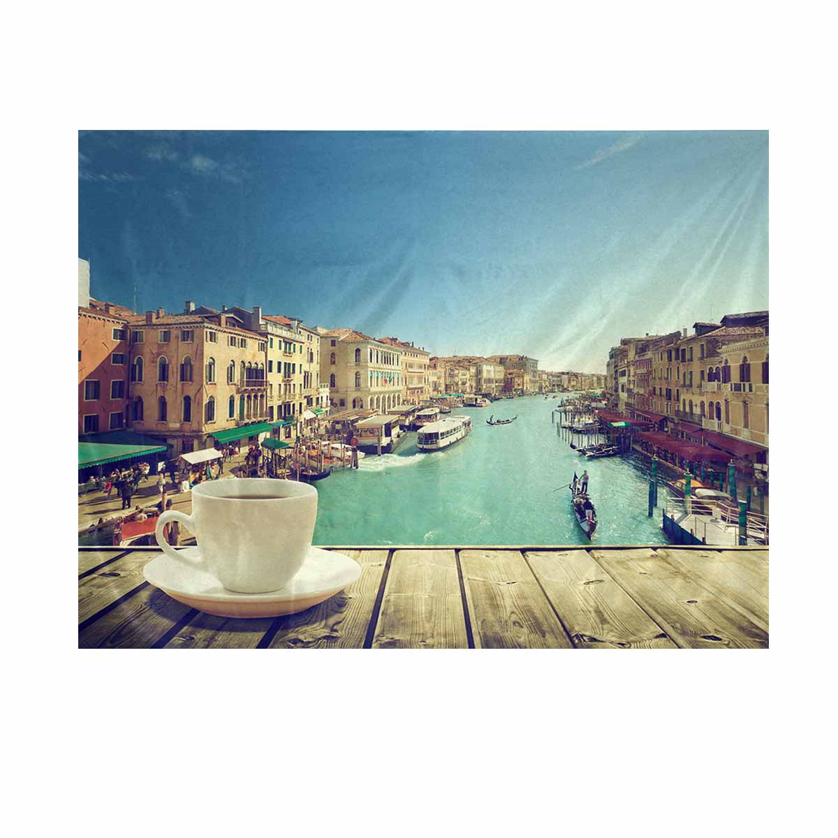 Landscape themed Wall Tapestries printed coffee on table and Venice in sunset time, Italy