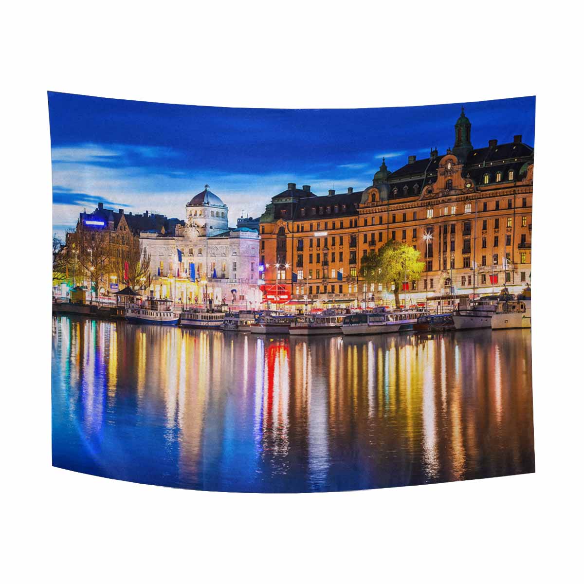 Landscape themed Wall Tapestries printed Evening scenery of Stockholm, Sweden