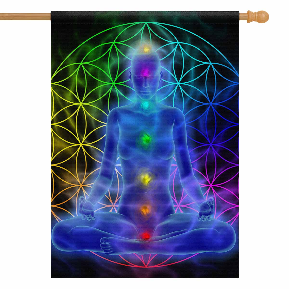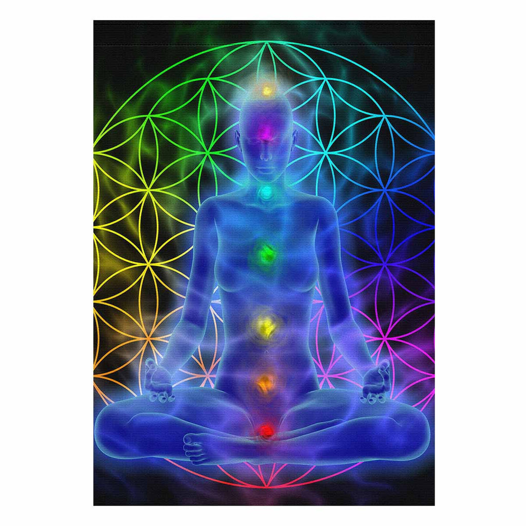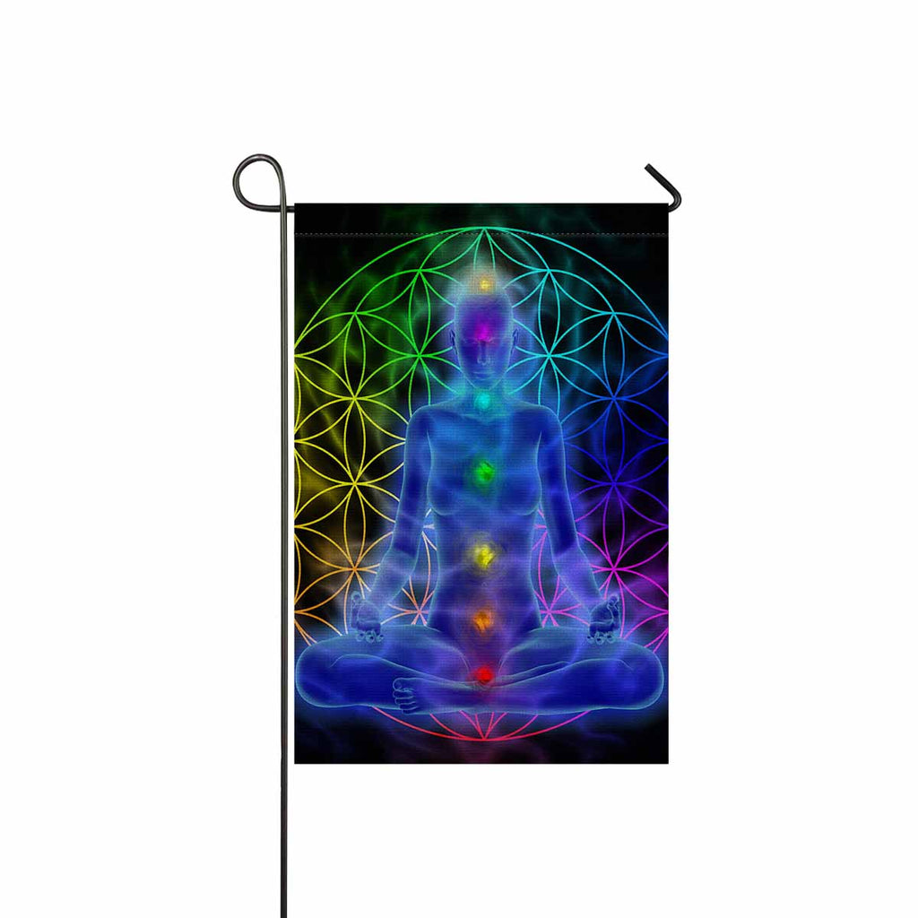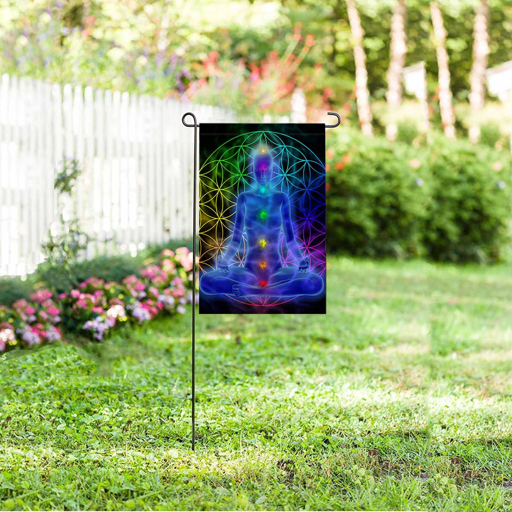 Garden Flags printed Mandala themed with Illustration of woman meditating, symbol flower of life