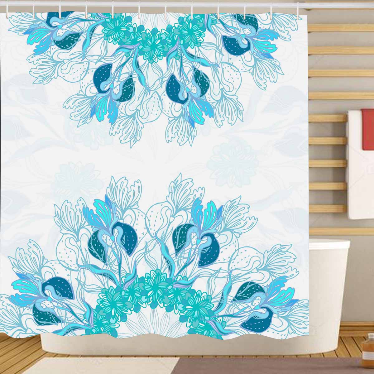 Designed for standardized bath tubs, fitted with C-shaped curtain hooks. Tough durable waterproof polyester fabric, preventing water from splashing out of the shower stall. One-side printing, using heat dye sublimation technique, long-lasting effects.