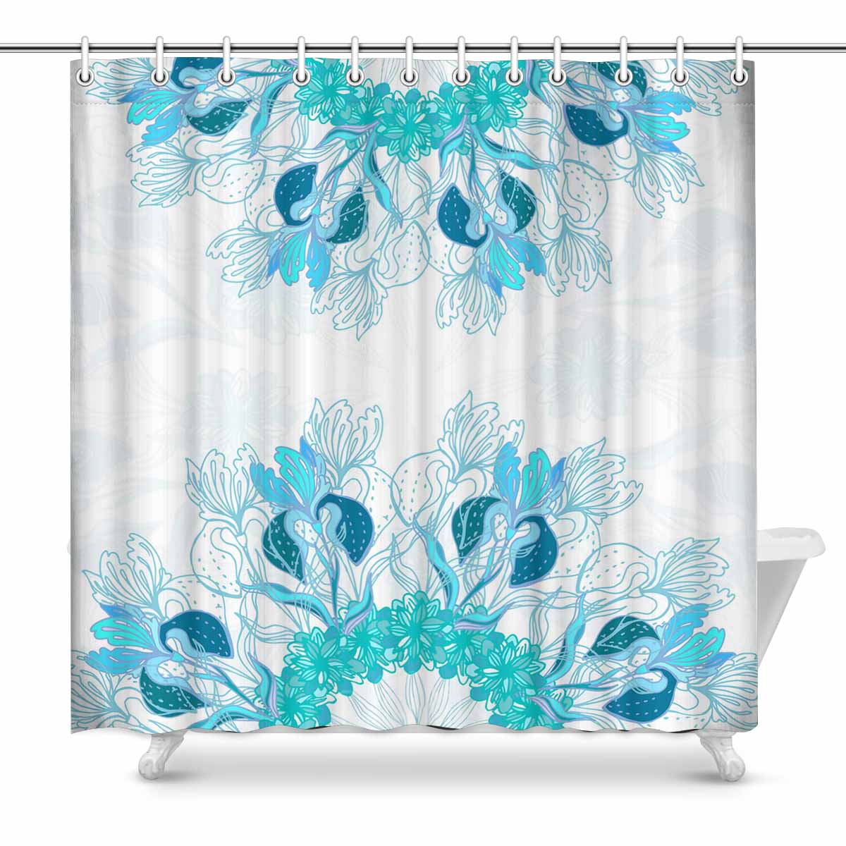 Mandala themed Shower Curtains print with Blue floral ornament mandala background with doodles iris