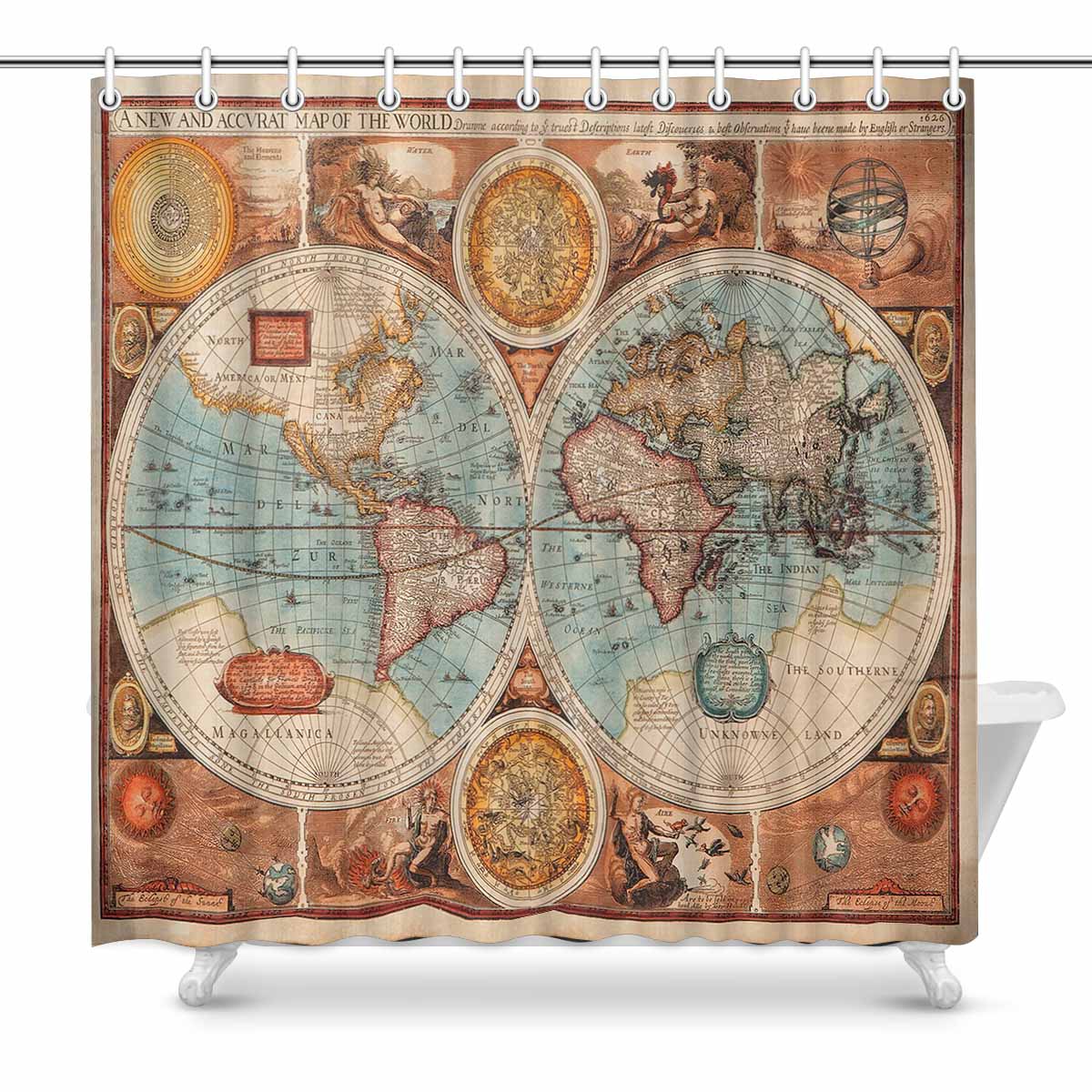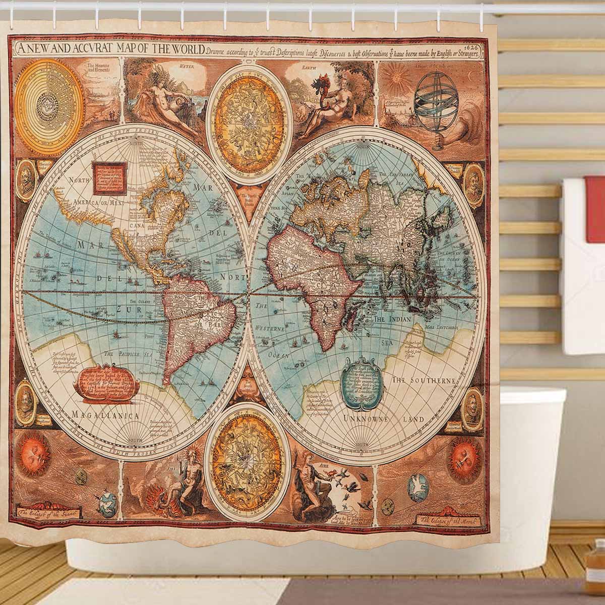 Map themed print on shower curtains for bathroom, create a brilliant atmosphere in your bathroom, include a selection of different stylish and custom-made designs for your bath decoration.